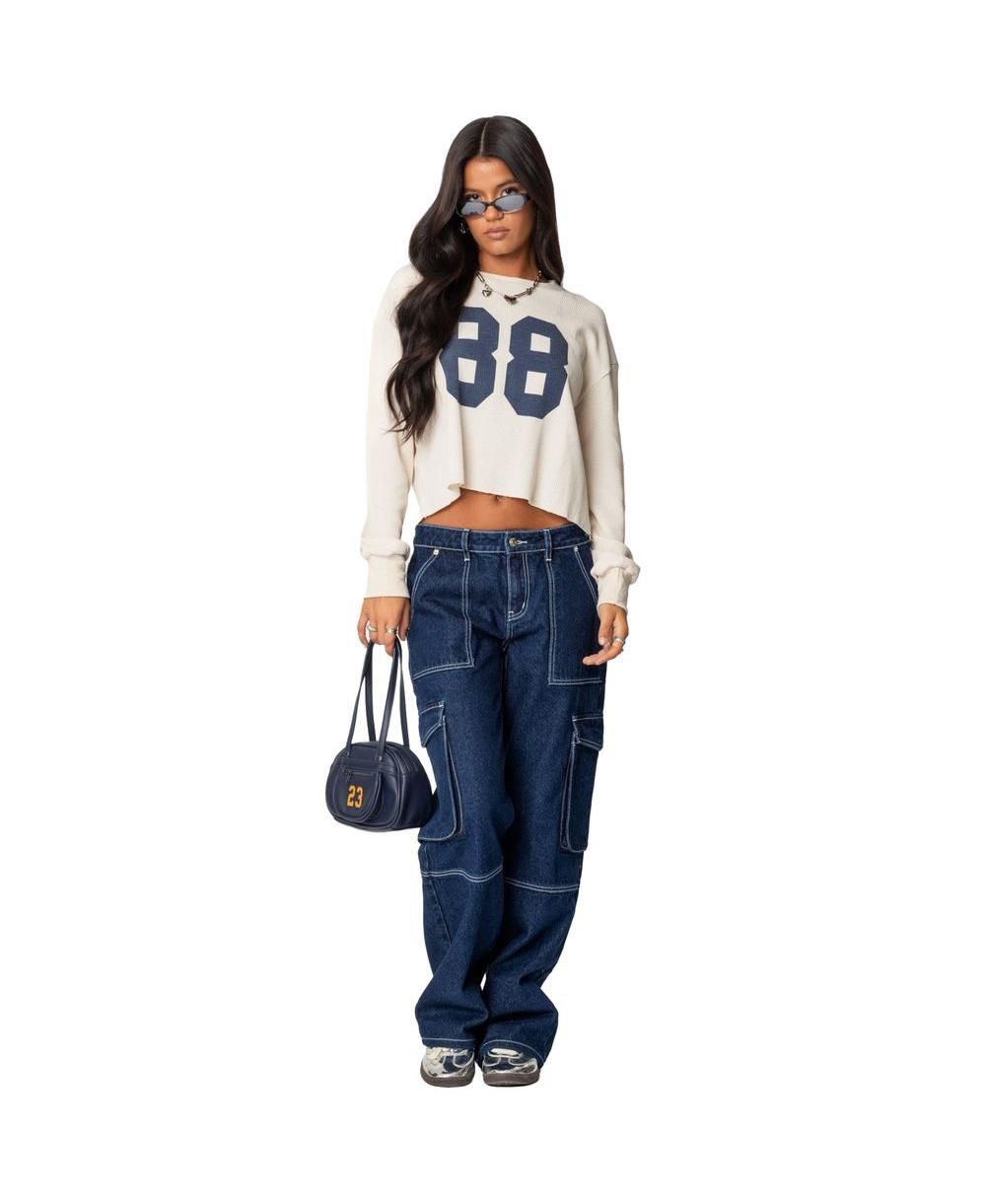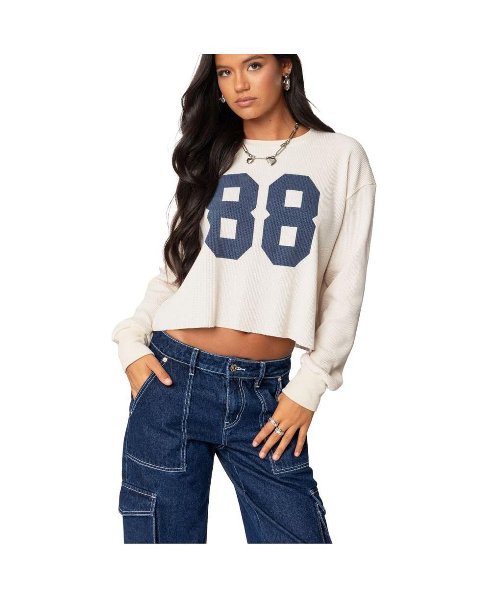 Edikted Womens 88 Waffle Long Sleeve T Shirt
