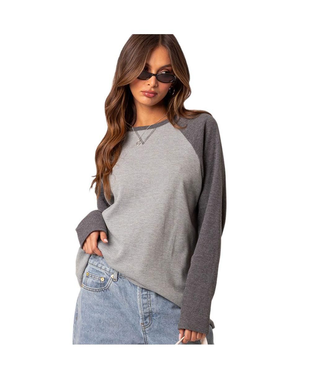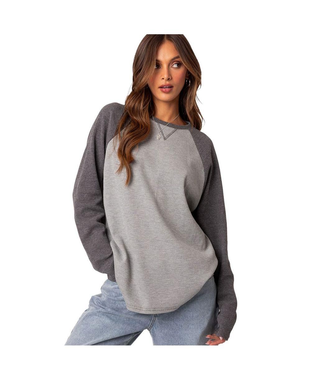 Edikted Womens Me Time oversized waffle top