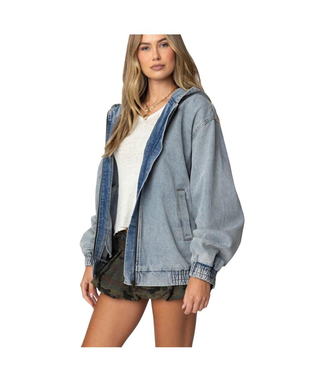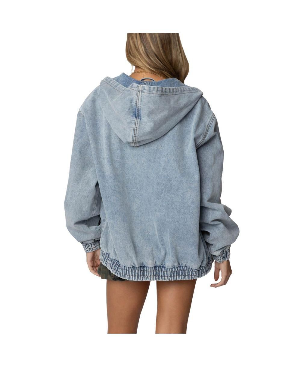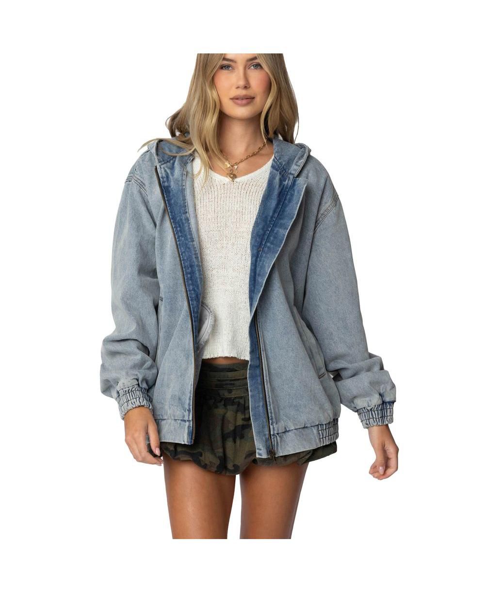 Edikted Womens Hooded Vintage Washed Denim Bomber Jacket