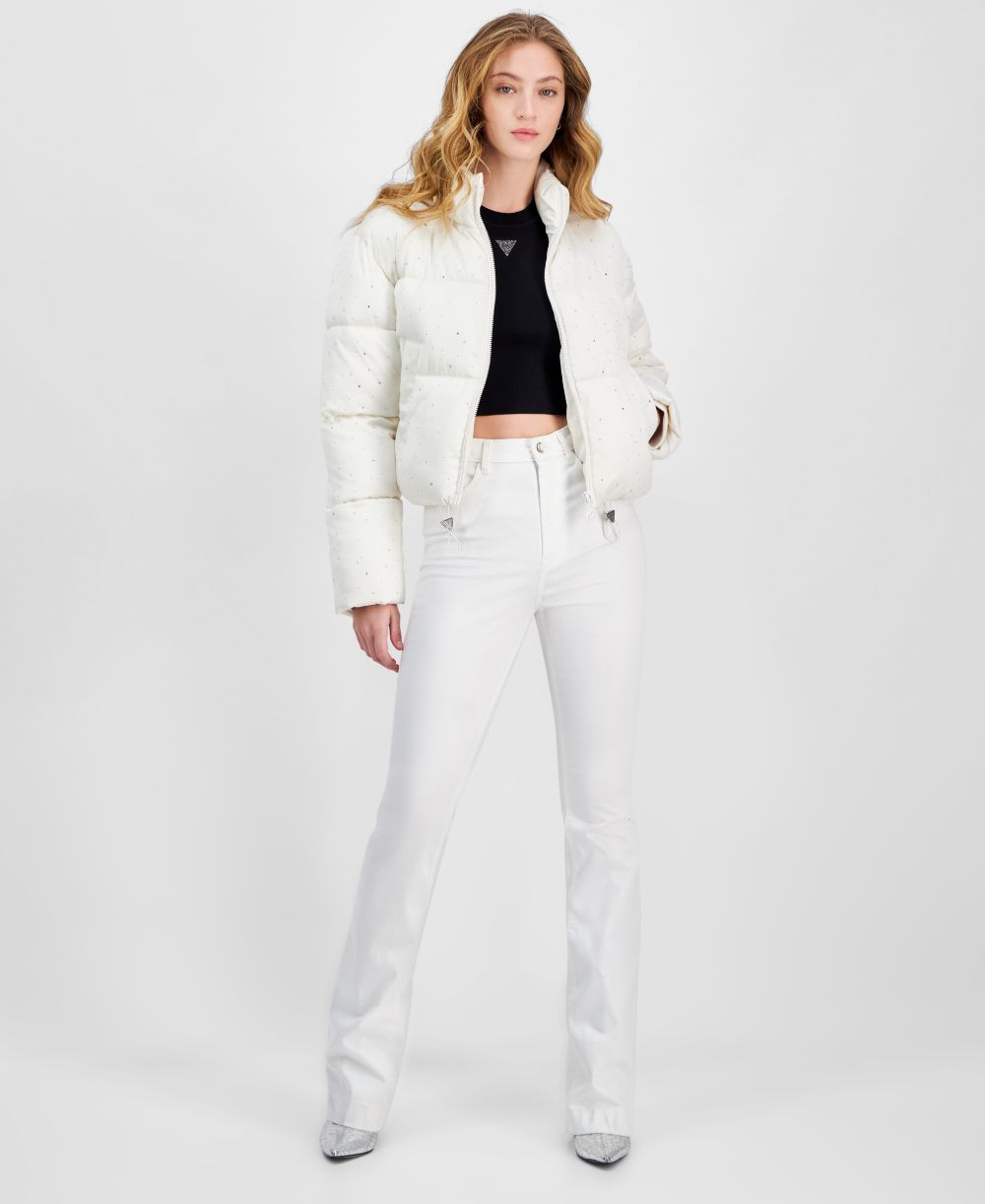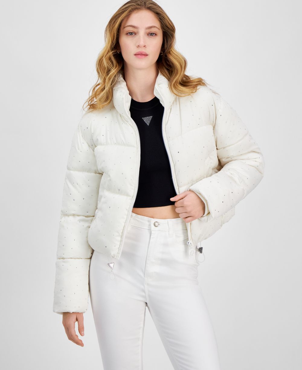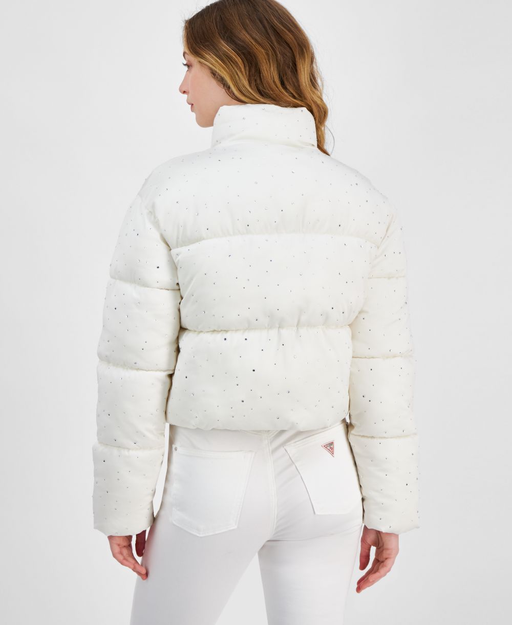 GUESS Womens Antonia Strass Embellished Puffer Coat