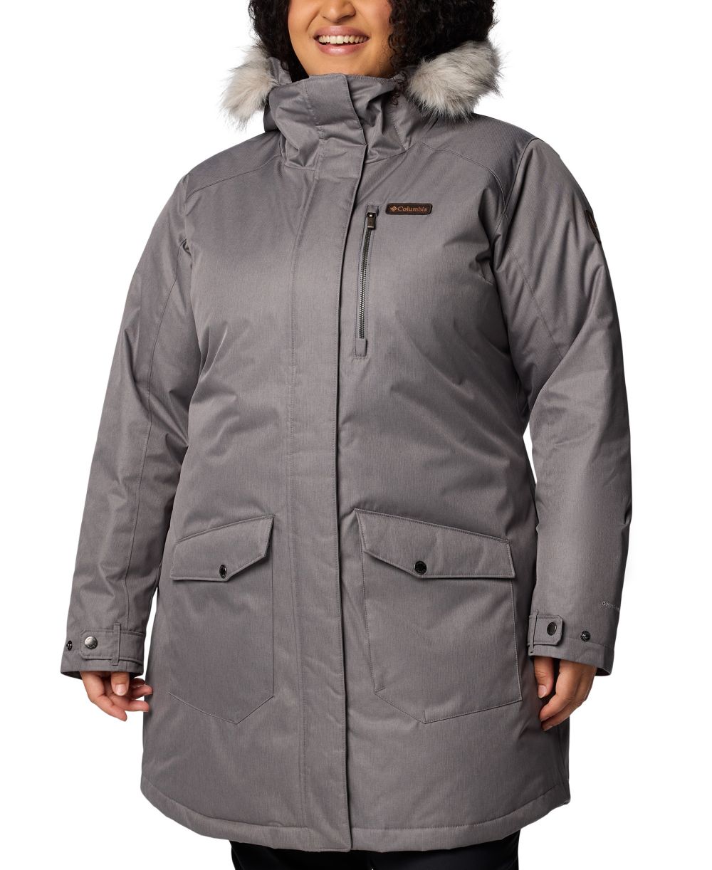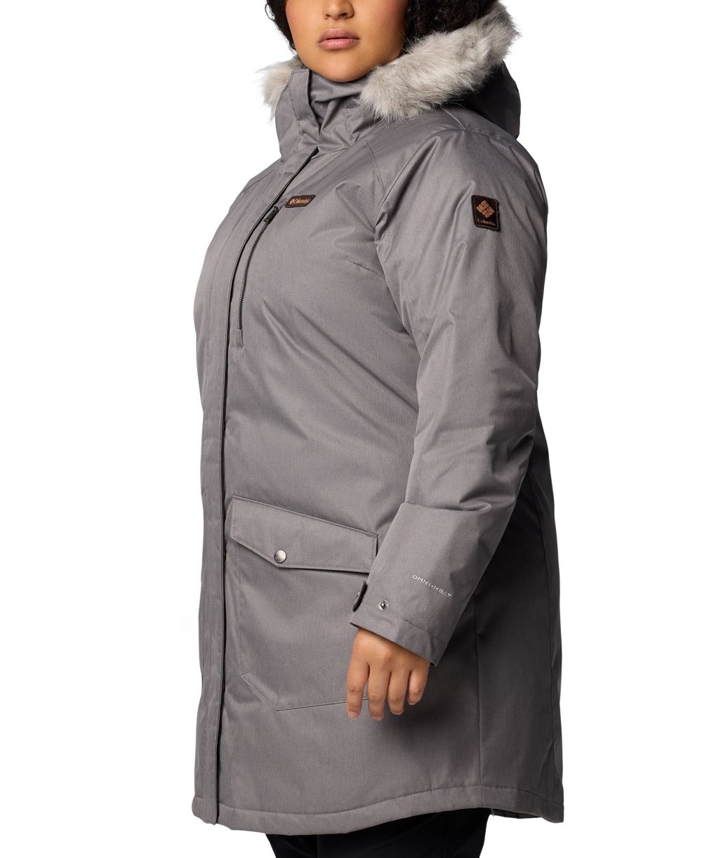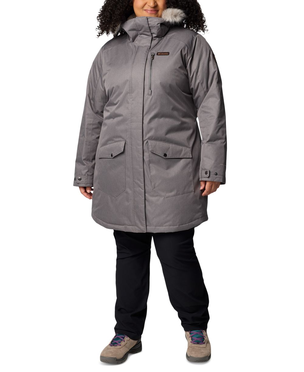 Columbia Plus Size Suttle Mountain Hooded Faux Fur Trim Long Insulated Coat