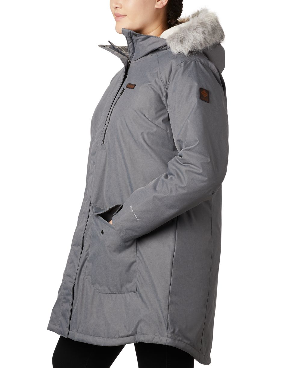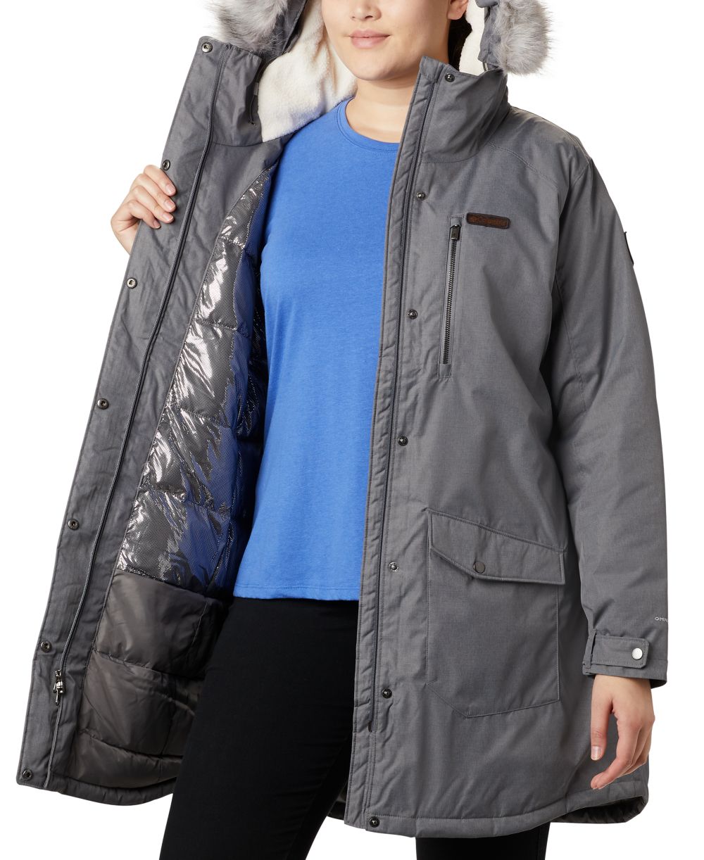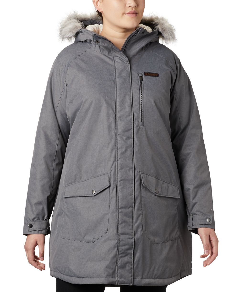 Columbia Plus Size Suttle Mountain Hooded Faux Fur Trim Long Insulated Coat