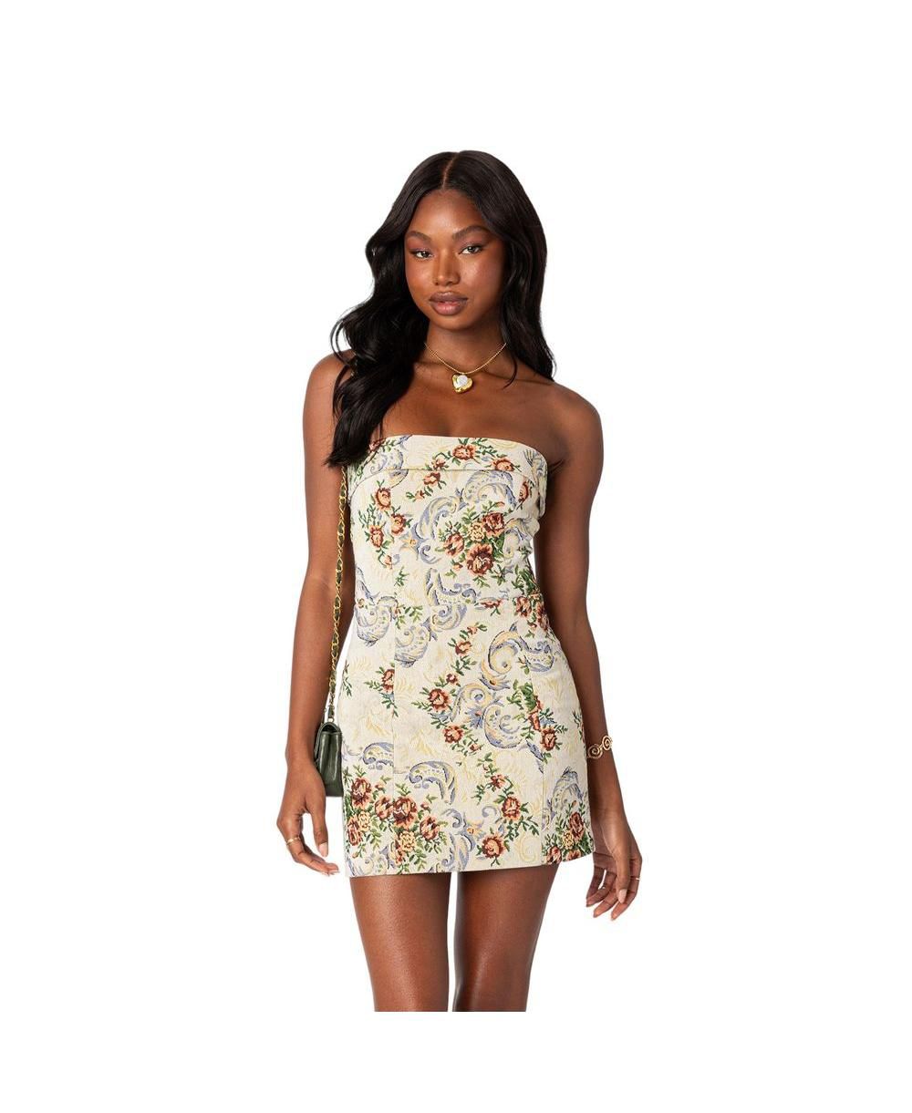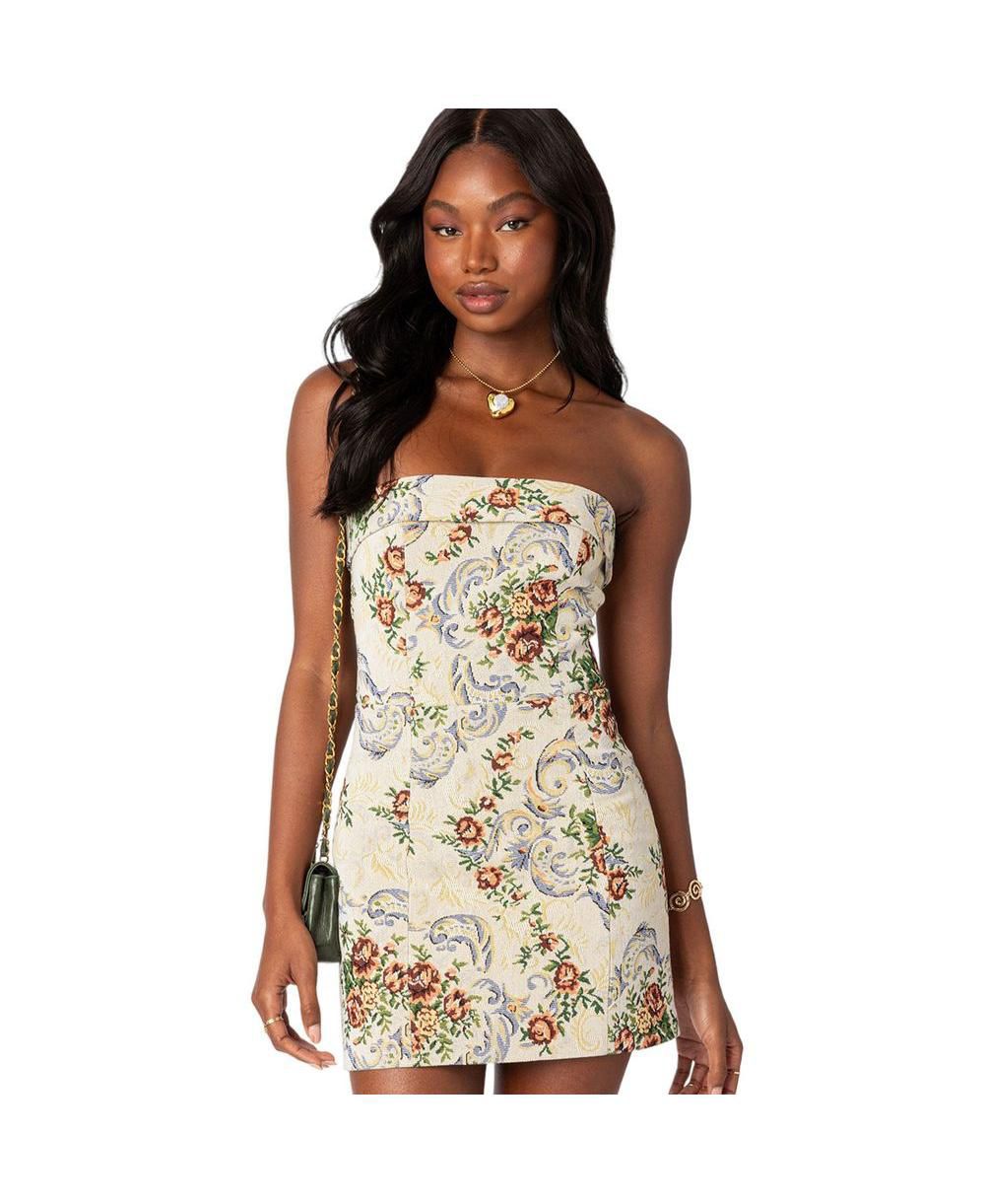 Edikted Womens Floral Tapestry Lace Up Mini Dress