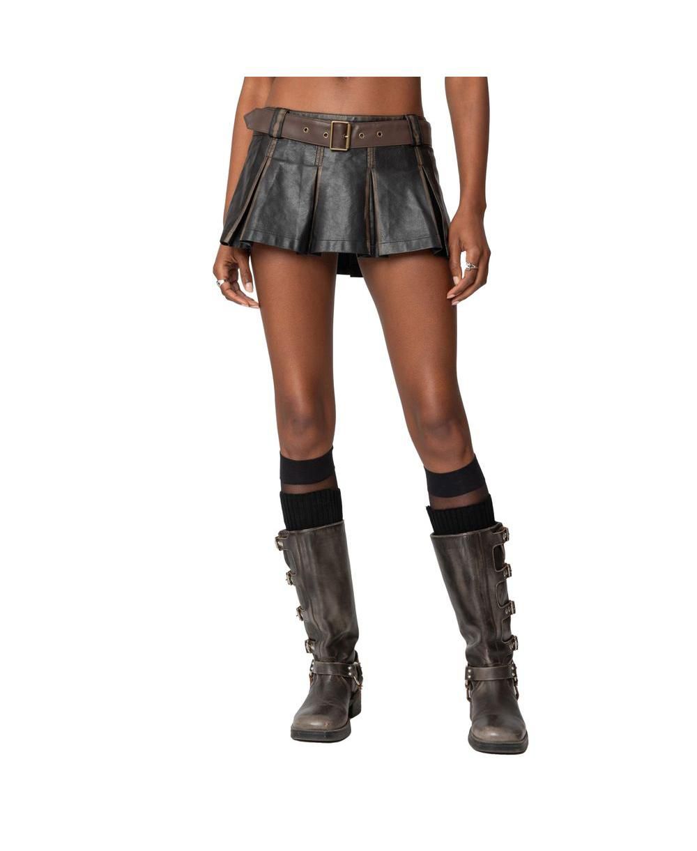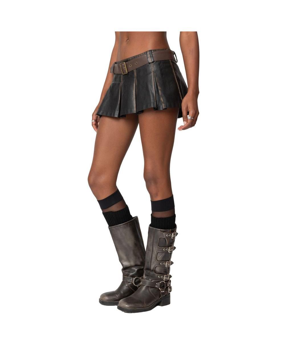 Edikted Womens Vintage Washed Faux Leather Pleated Skort