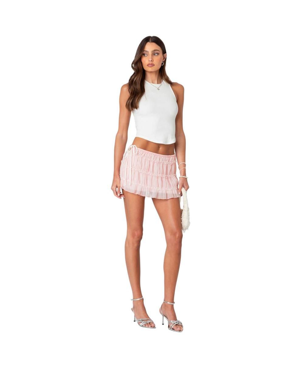 Edikted Womens Abrielle Tiered Chiffon Mini Skirt