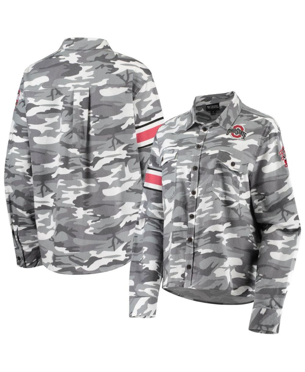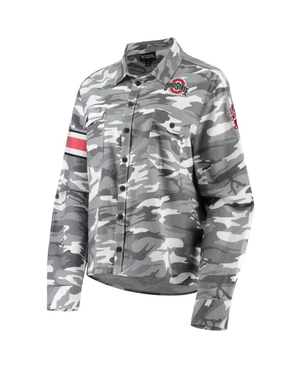 The Wild Collective Womens Gray Ohio State Buckeyes Camo Flannel Button Up Long Sleeve Shirt