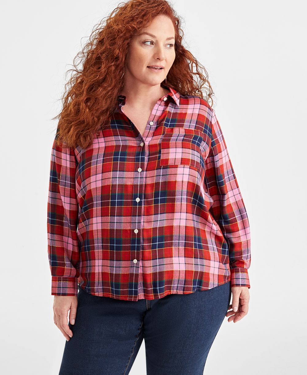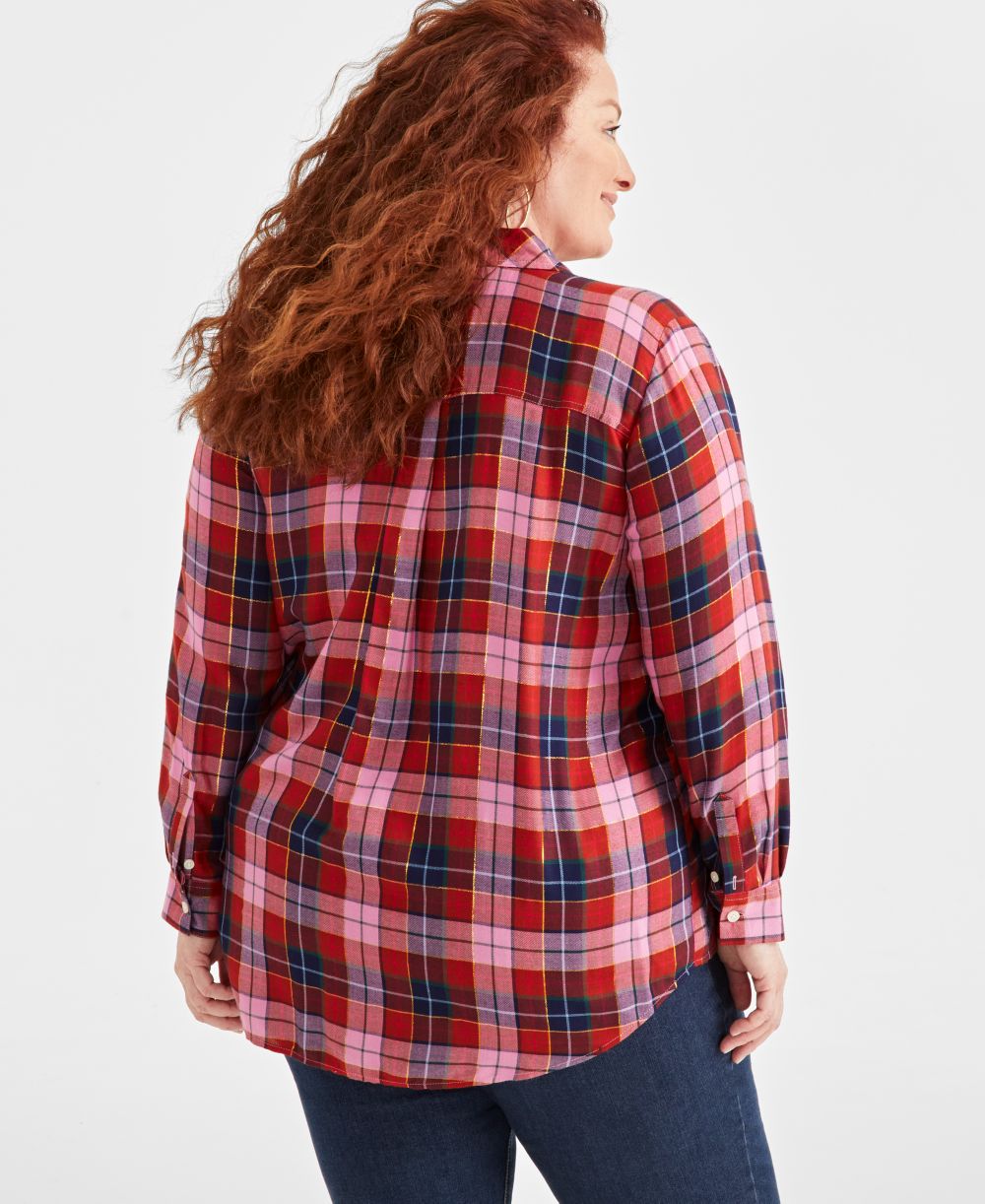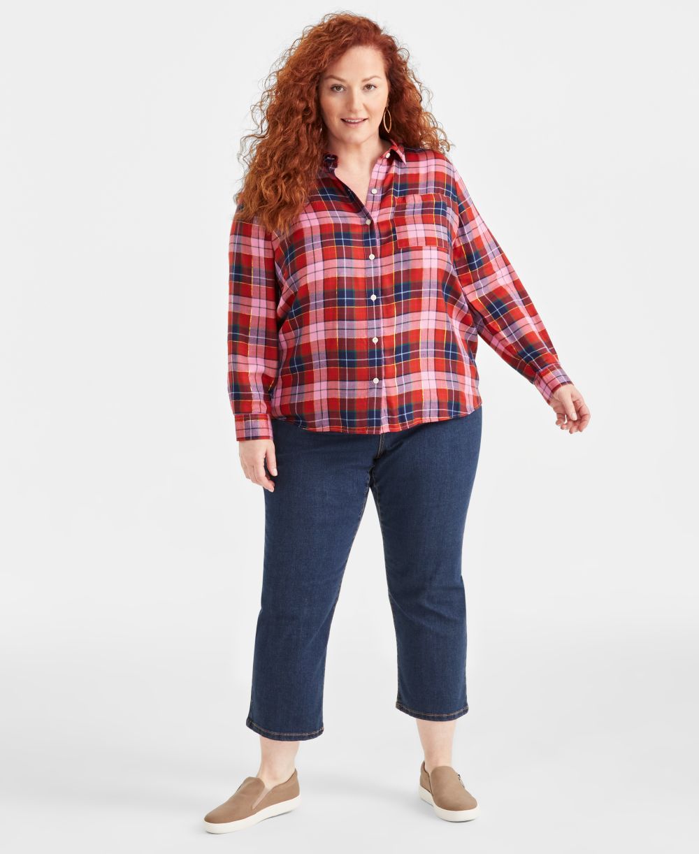 Style & Co Plus Size Shine Plaid Perfect Shirt