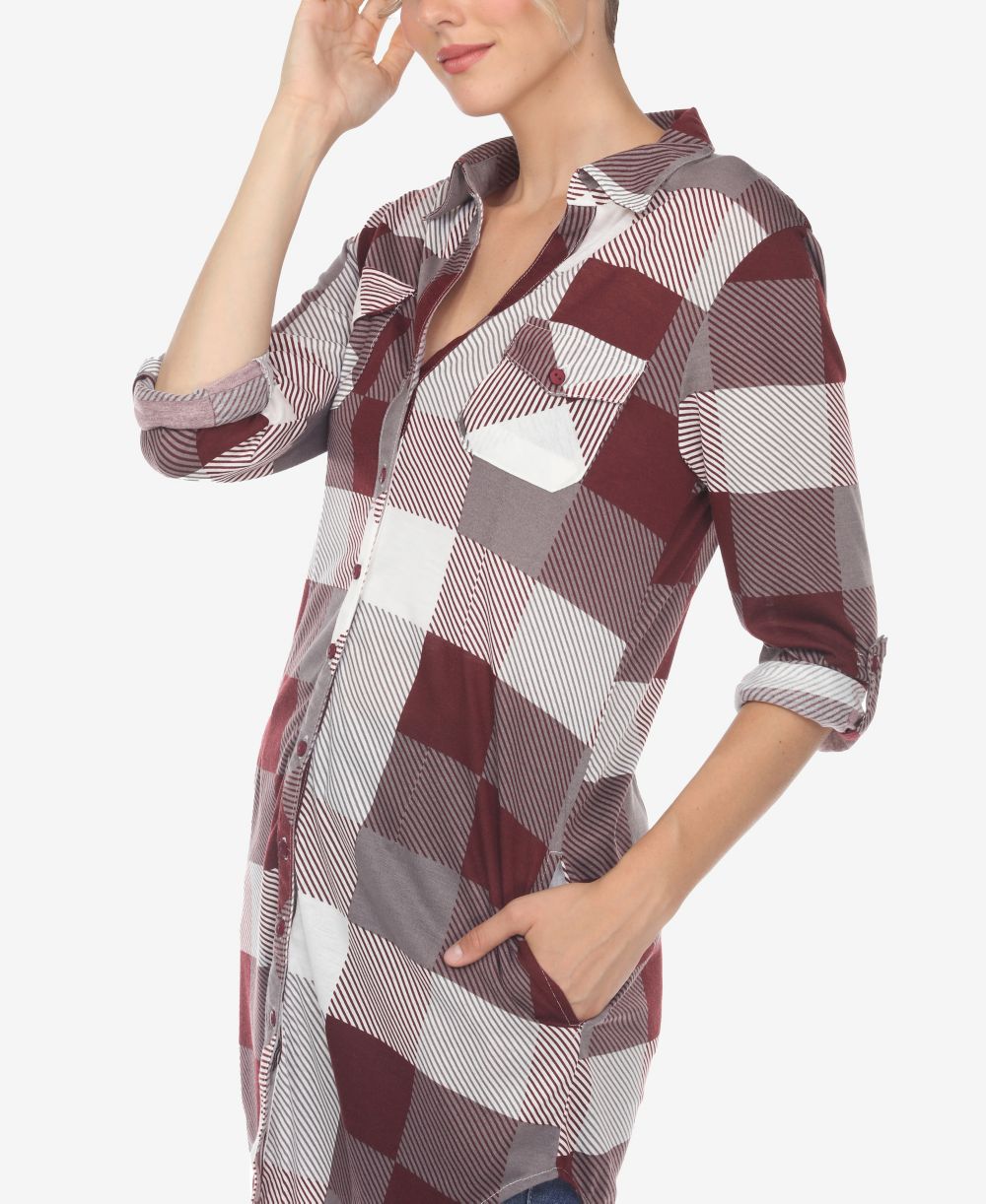 White Mark Womens Plaid Tunic Shirt