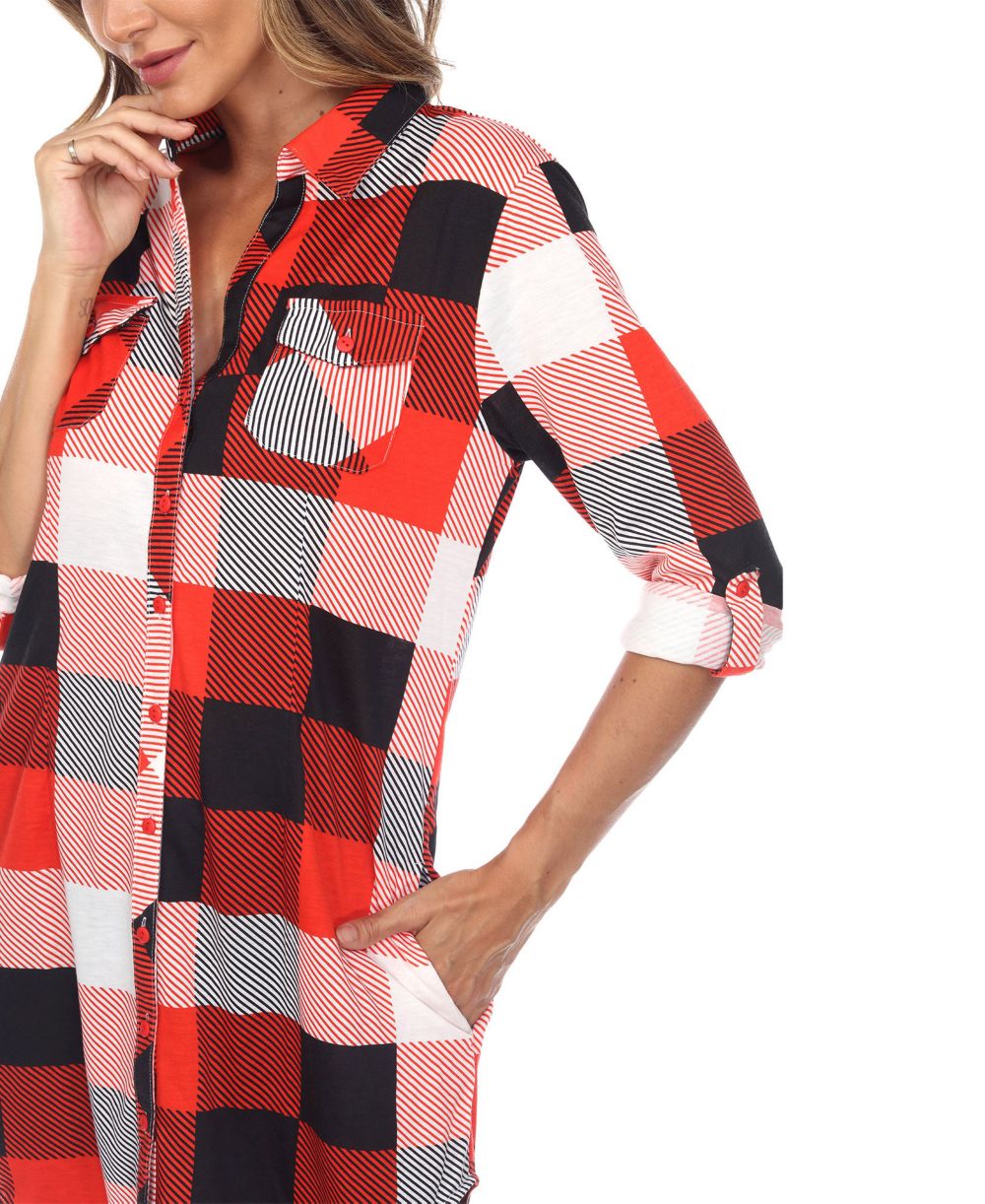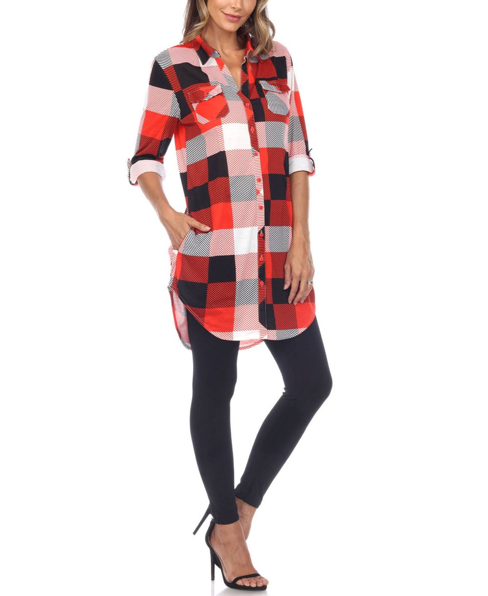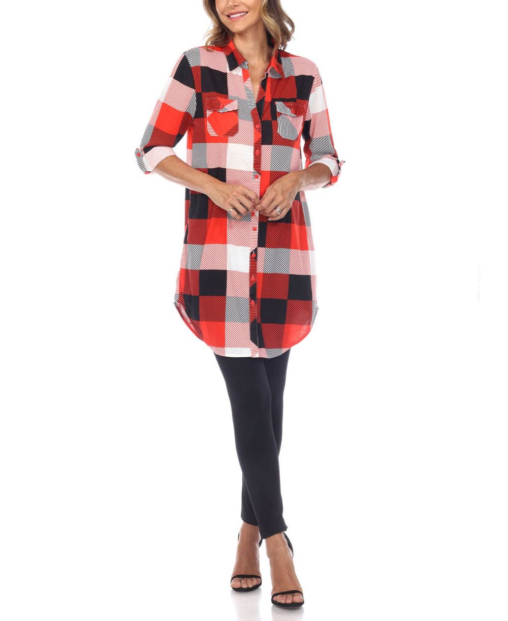 White Mark Womens Plaid Tunic Shirt