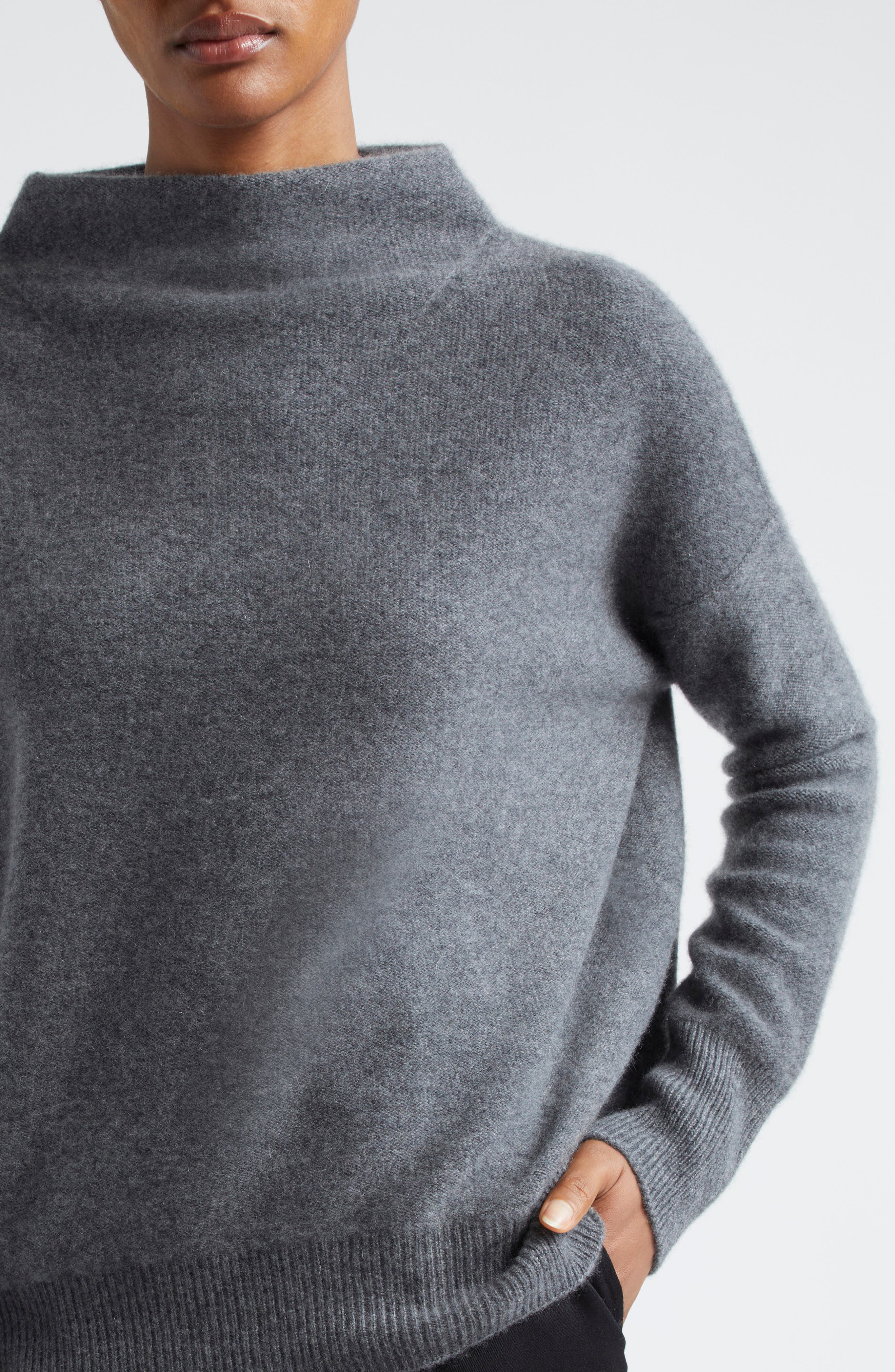 Vince Boiled Cashmere Funnel Neck Pullover_Heather Graphite