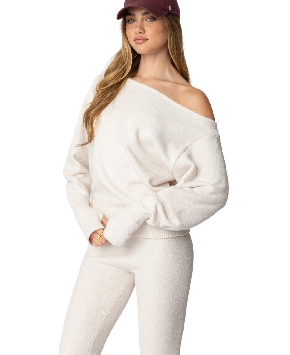 Edikted Womens Plush Oversized Asymmetric Sweater
