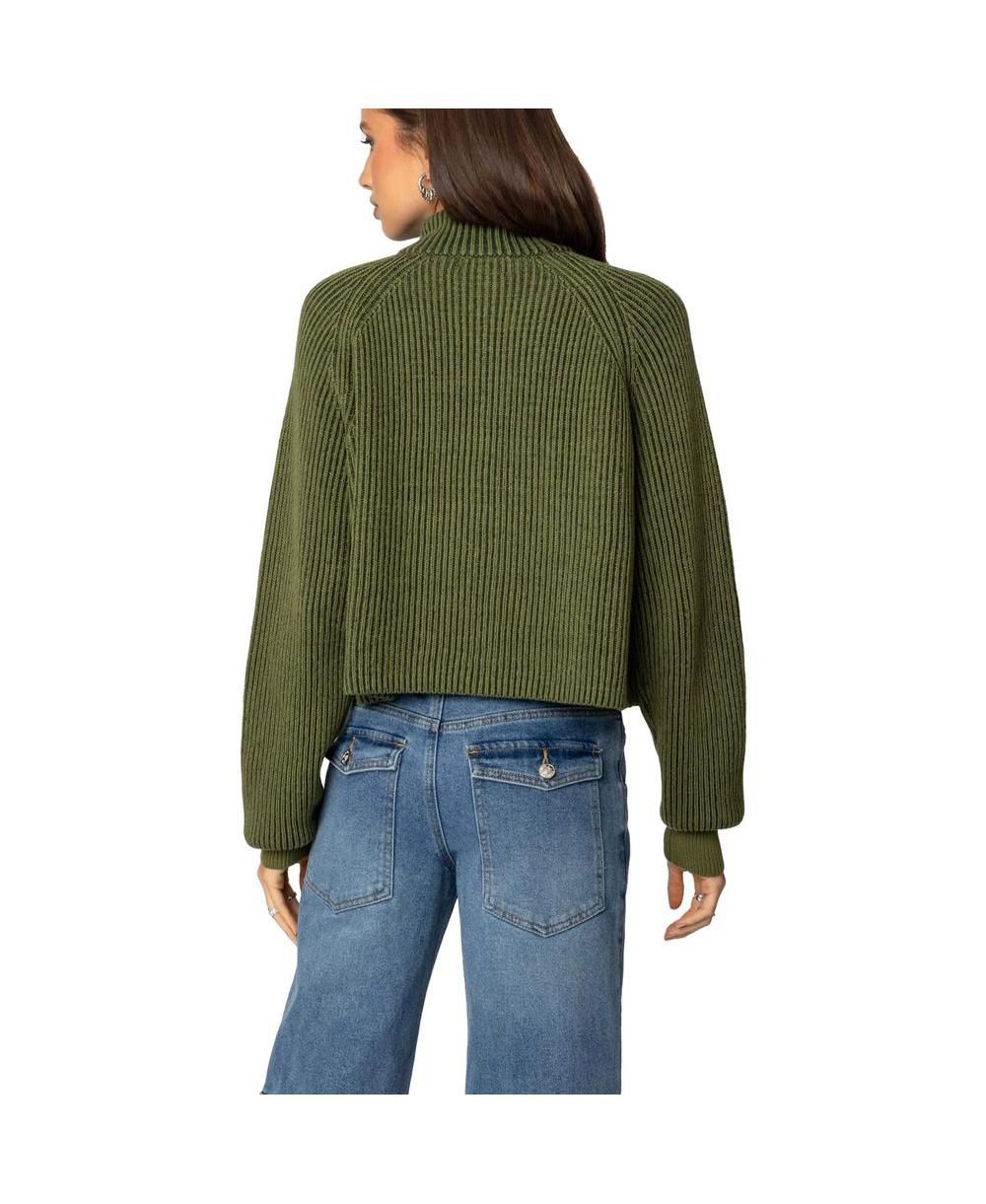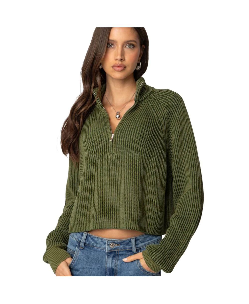 Edikted Womens Cropped Rib Knit Half Zip Sweater