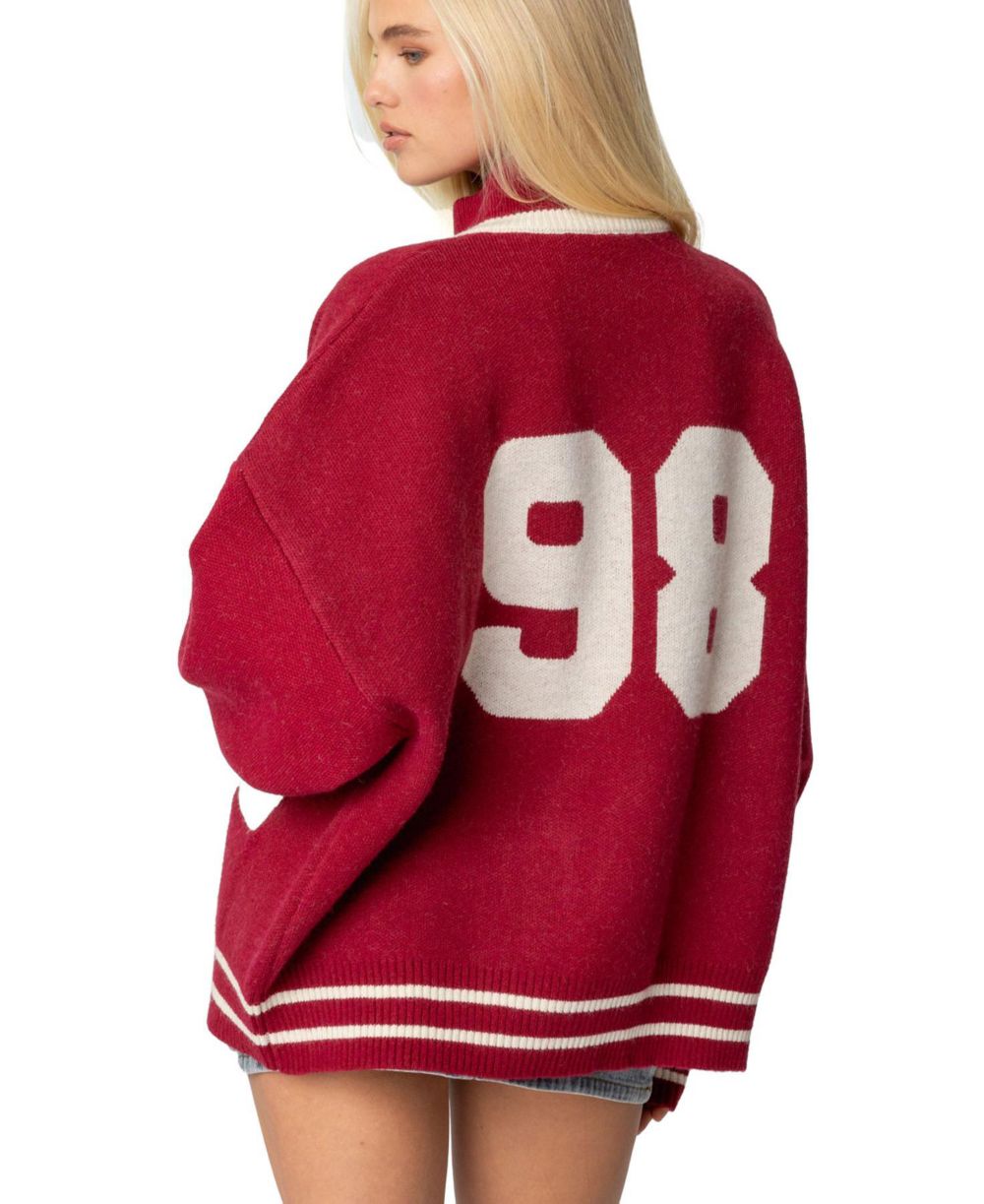 Edikted Womens 98 Varsity Zip Up Sweater