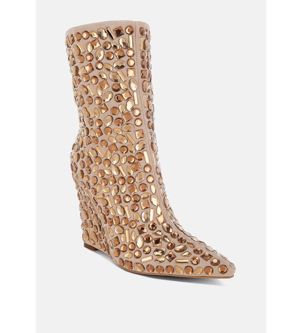 London Rag Trend Titan Diamante Slim Wedge Heel Boots
