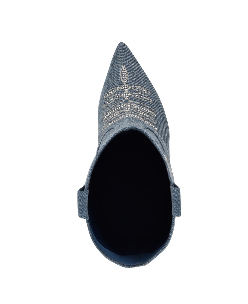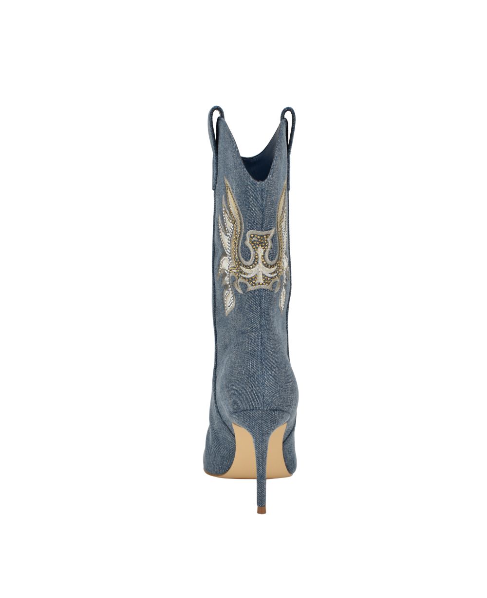 GUESS Womens Rasima Denim Rhinestone Embellished High Heel Western Boots