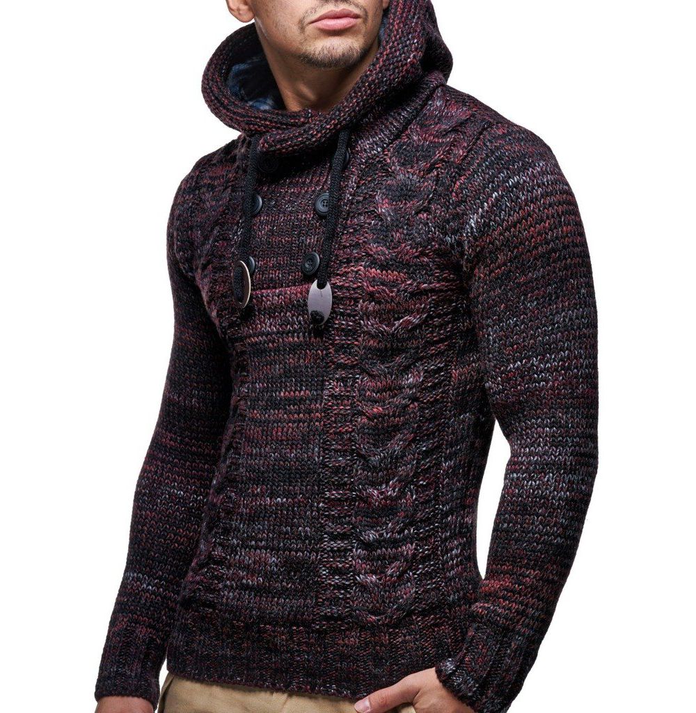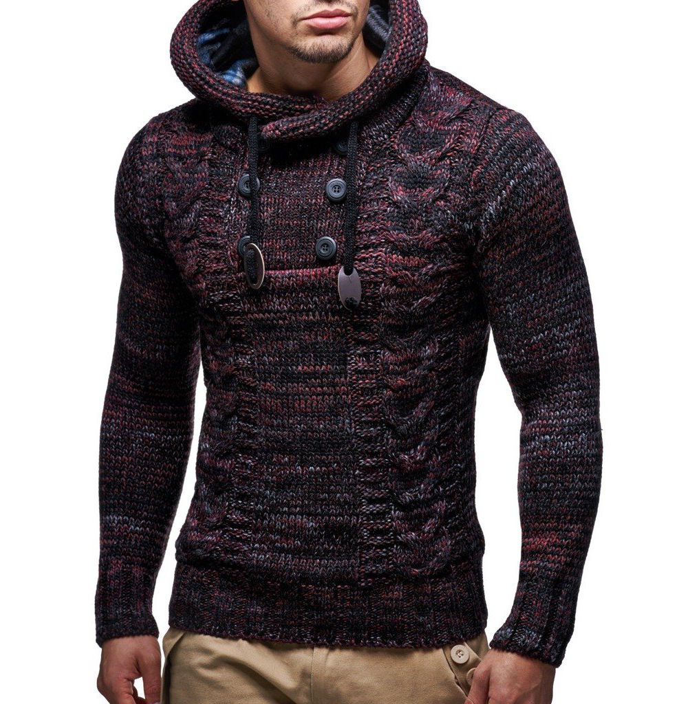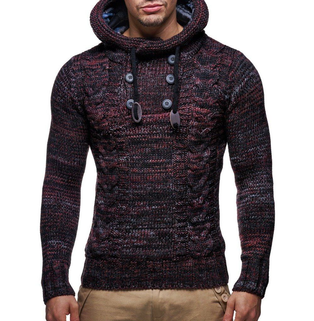 Leif Nelson Mens Knit Hoodie Sweater with Button Accents Cable Knit Design