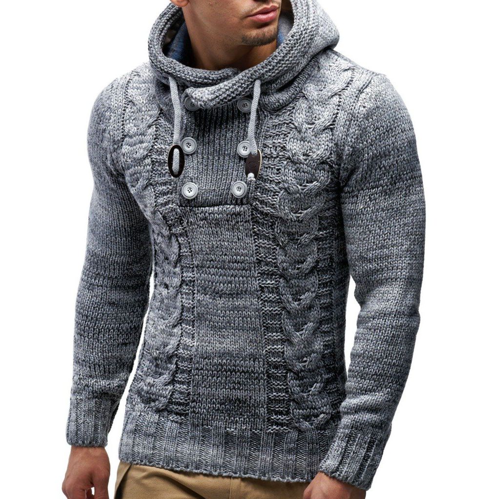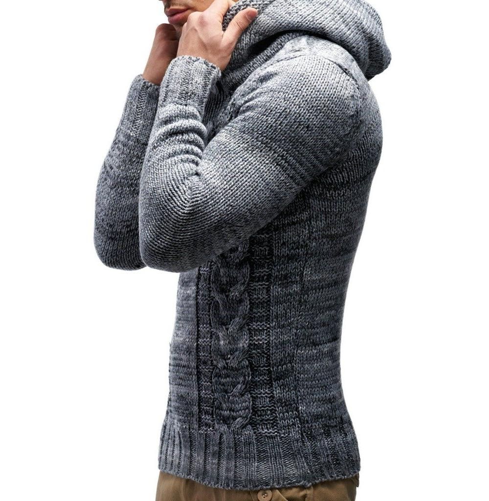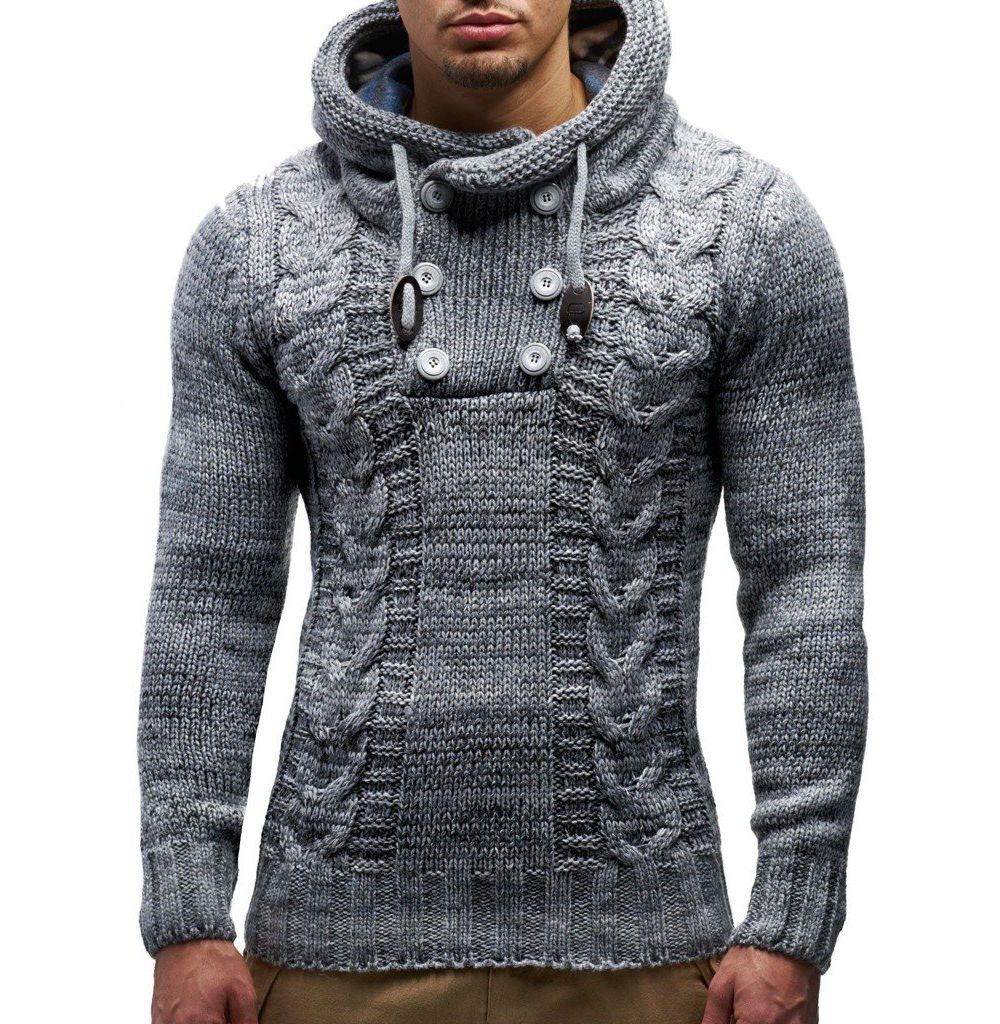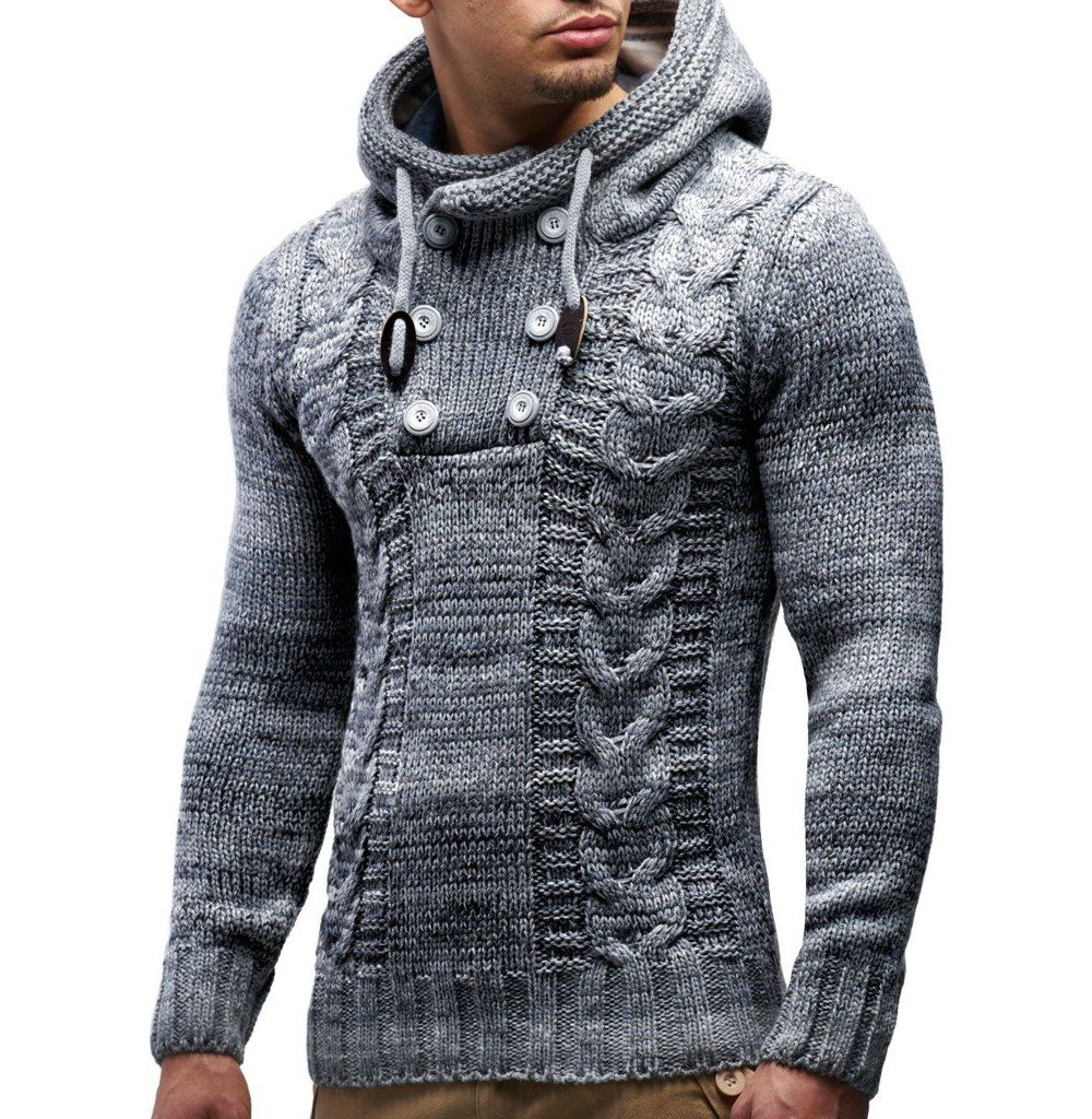 Leif Nelson Mens Knit Hoodie Sweater with Button Accents Cable Knit Design