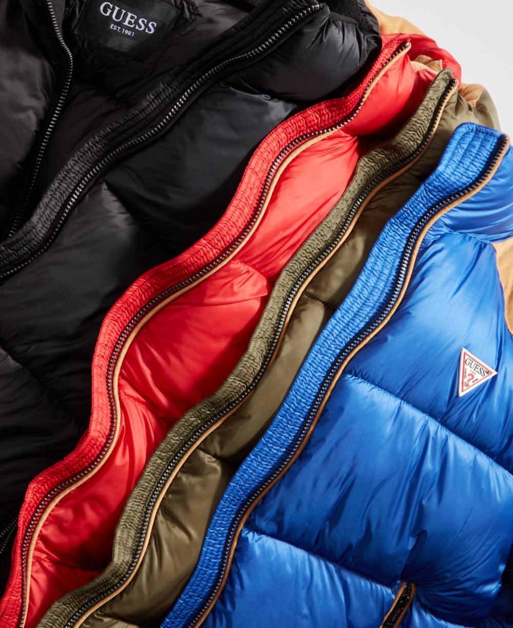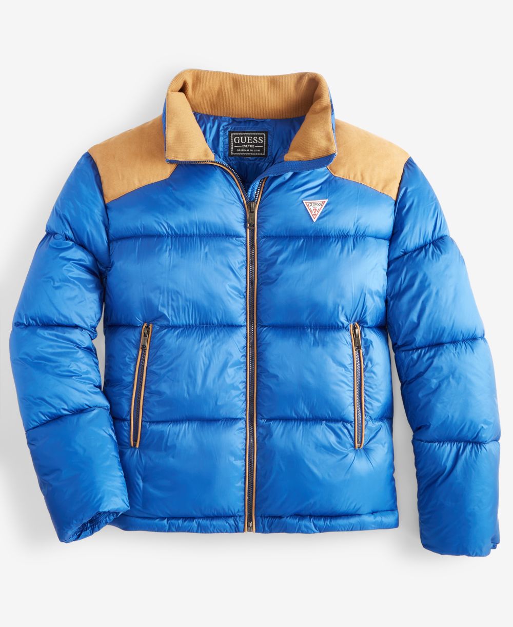 GUESS Mens Larry Fabric Block Puffer Jacket