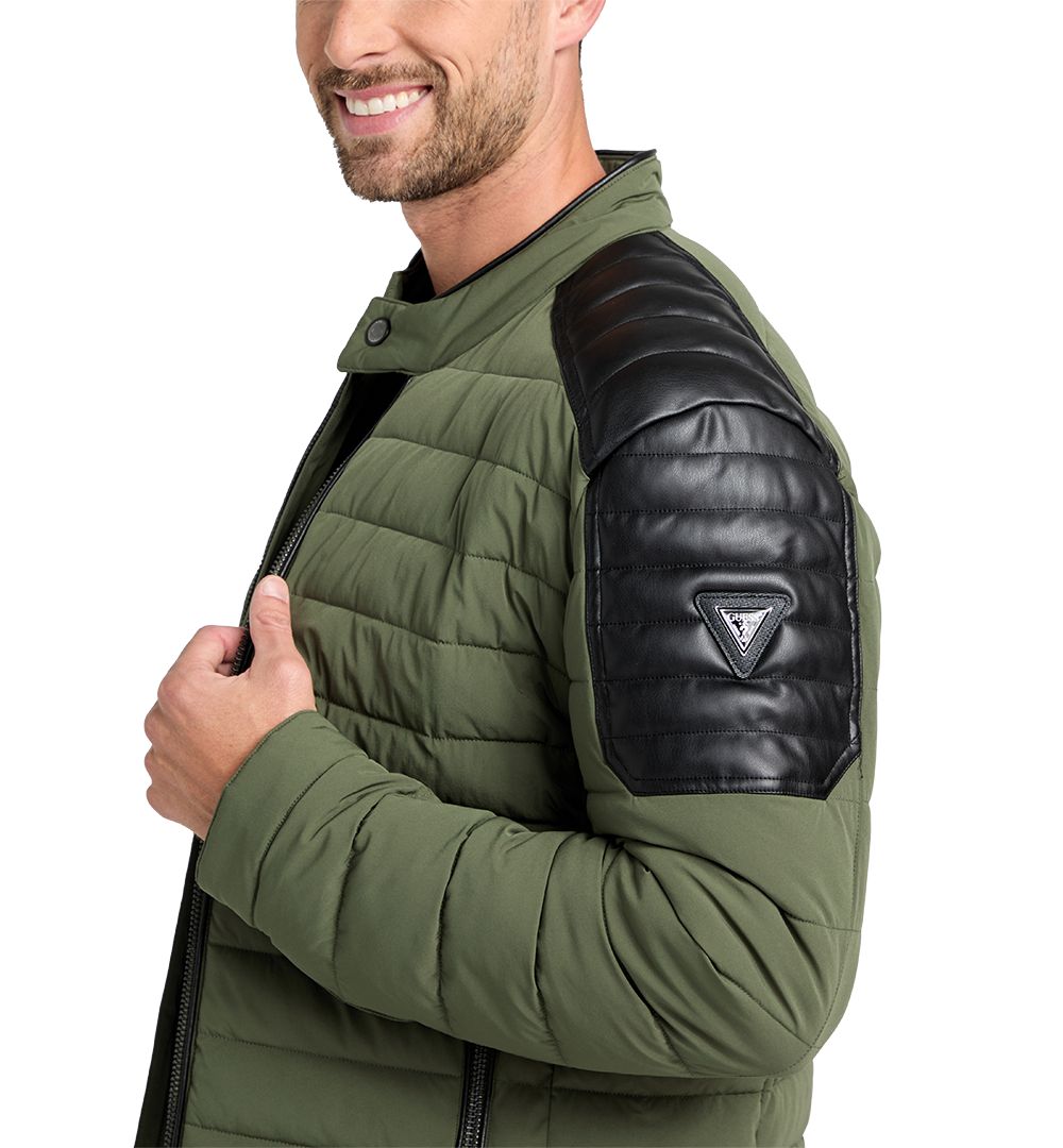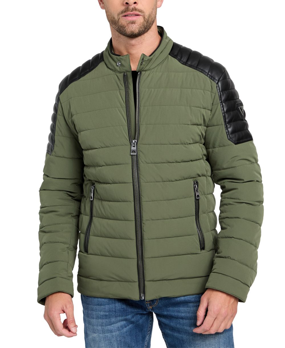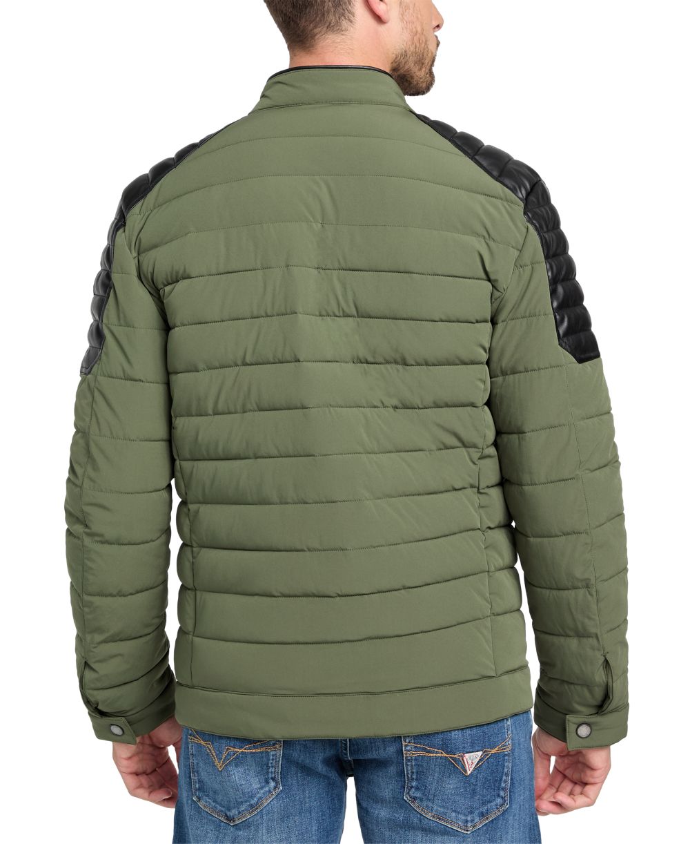 GUESS Mens Lightweight Quilted Jacket with Moto Detail