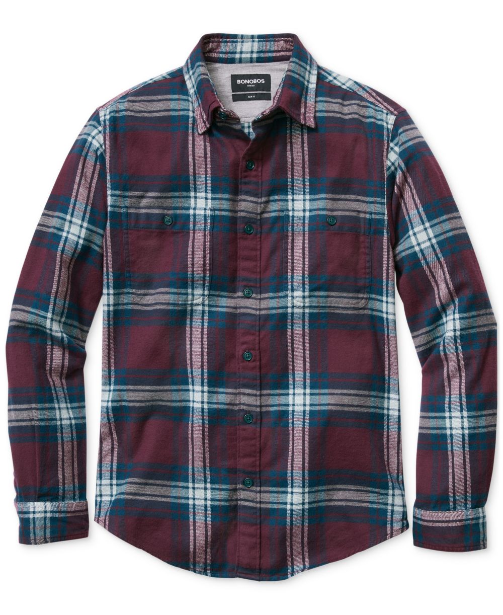 Bonobos Mens Slim Fit Long Sleeve Button Front Stretch Plaid Flannel Shirt