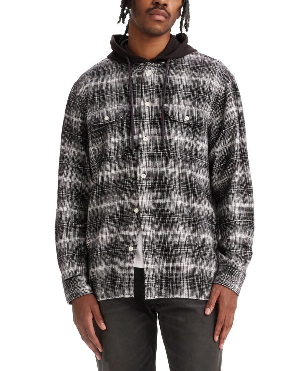 Levis Mens Relaxed Fit Hooded Long Sleeve Button Front Overshirt