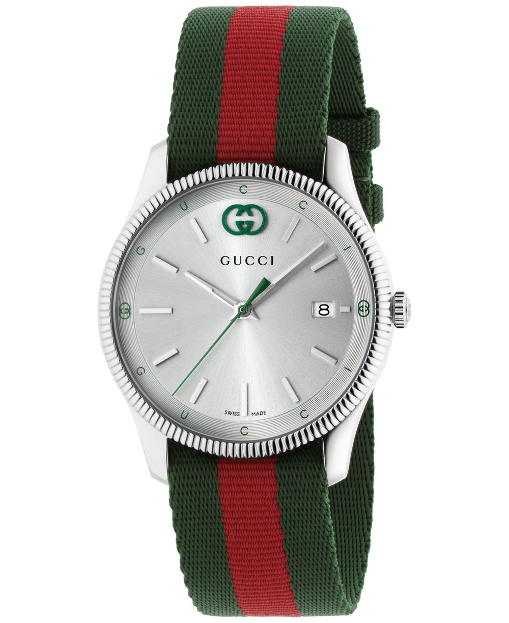 Gucci Womens Swiss G Timeless Red & Green Nylon Strap Watch 38mm