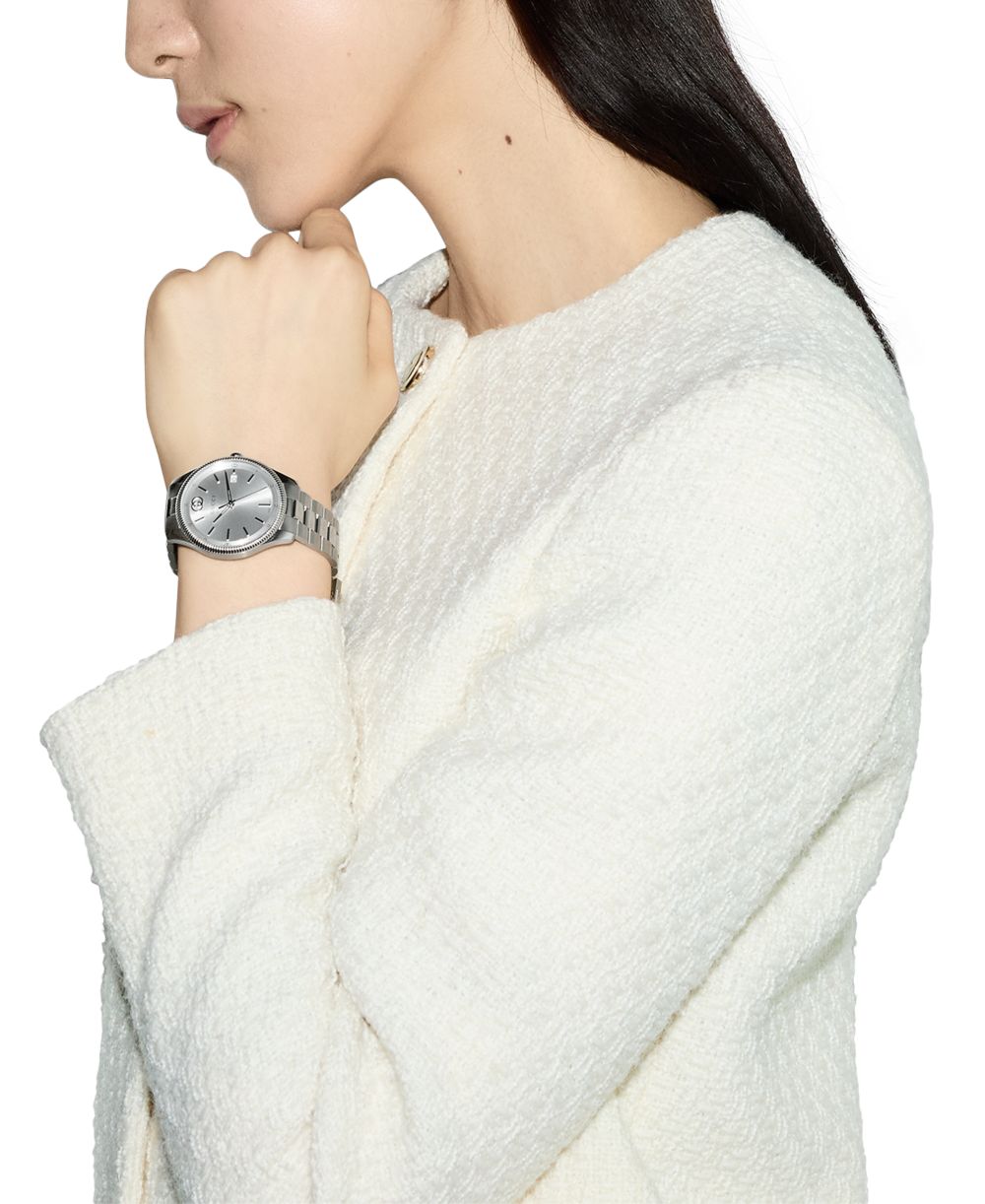 Gucci Womens Swiss G Timeless Stainless Steel Bracelet Watch 38mm