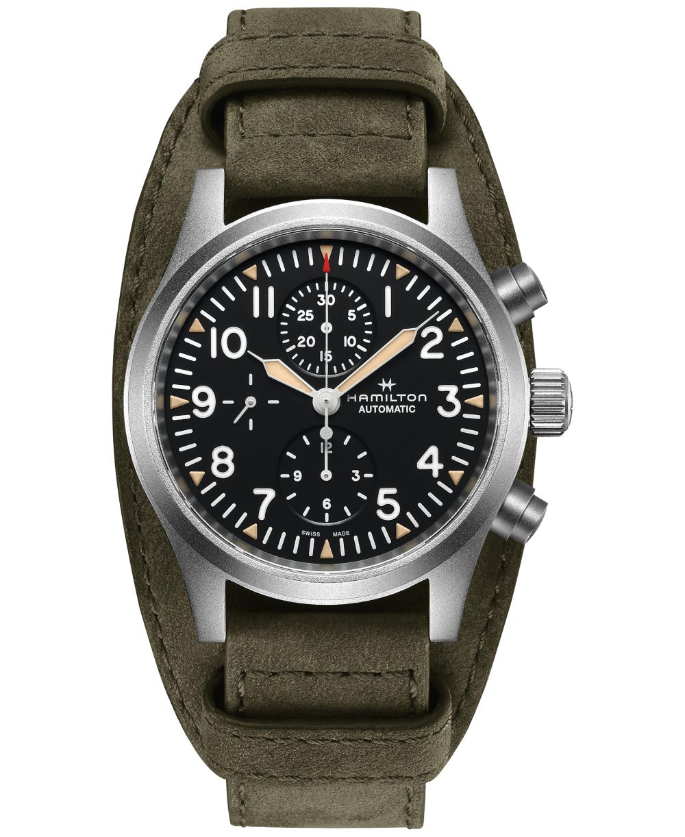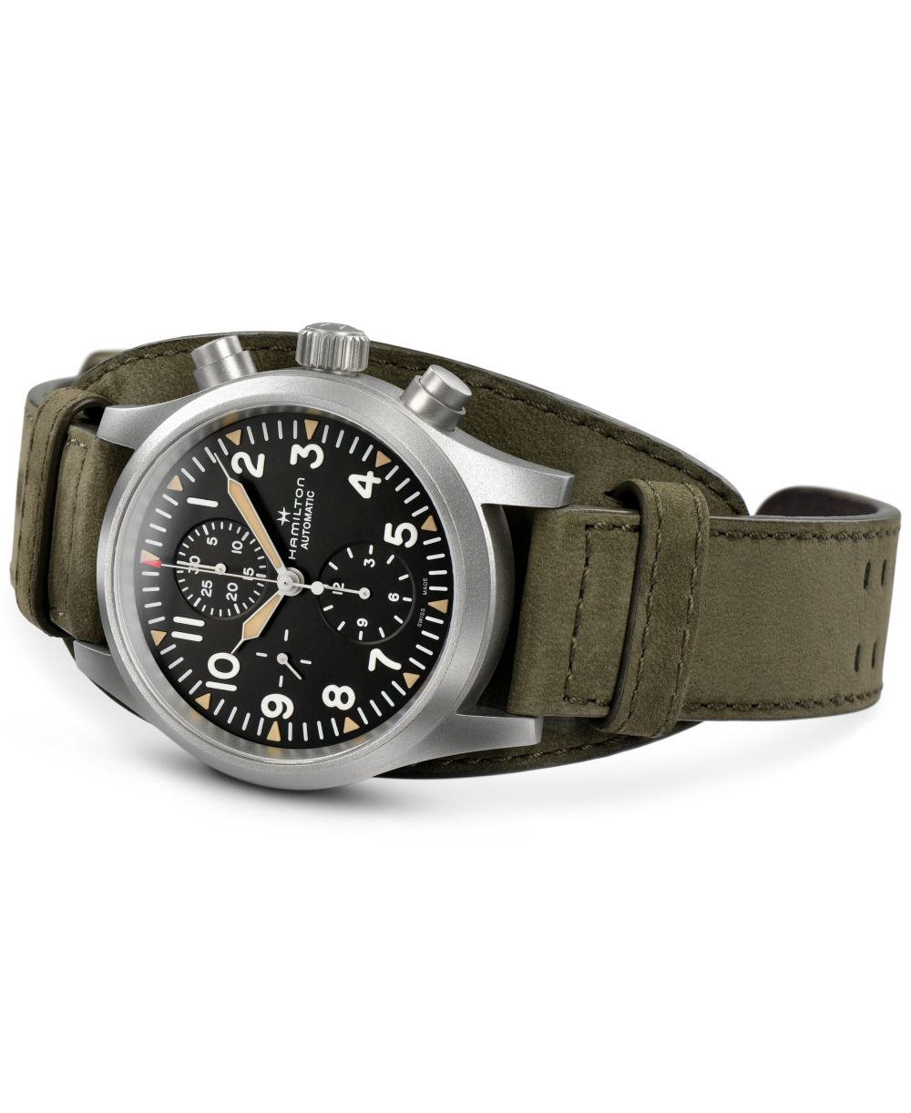 Hamilton Mens Khaki Field Automatic Chronograph Green Leather Strap Watch 44mm