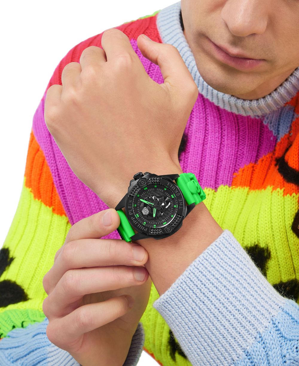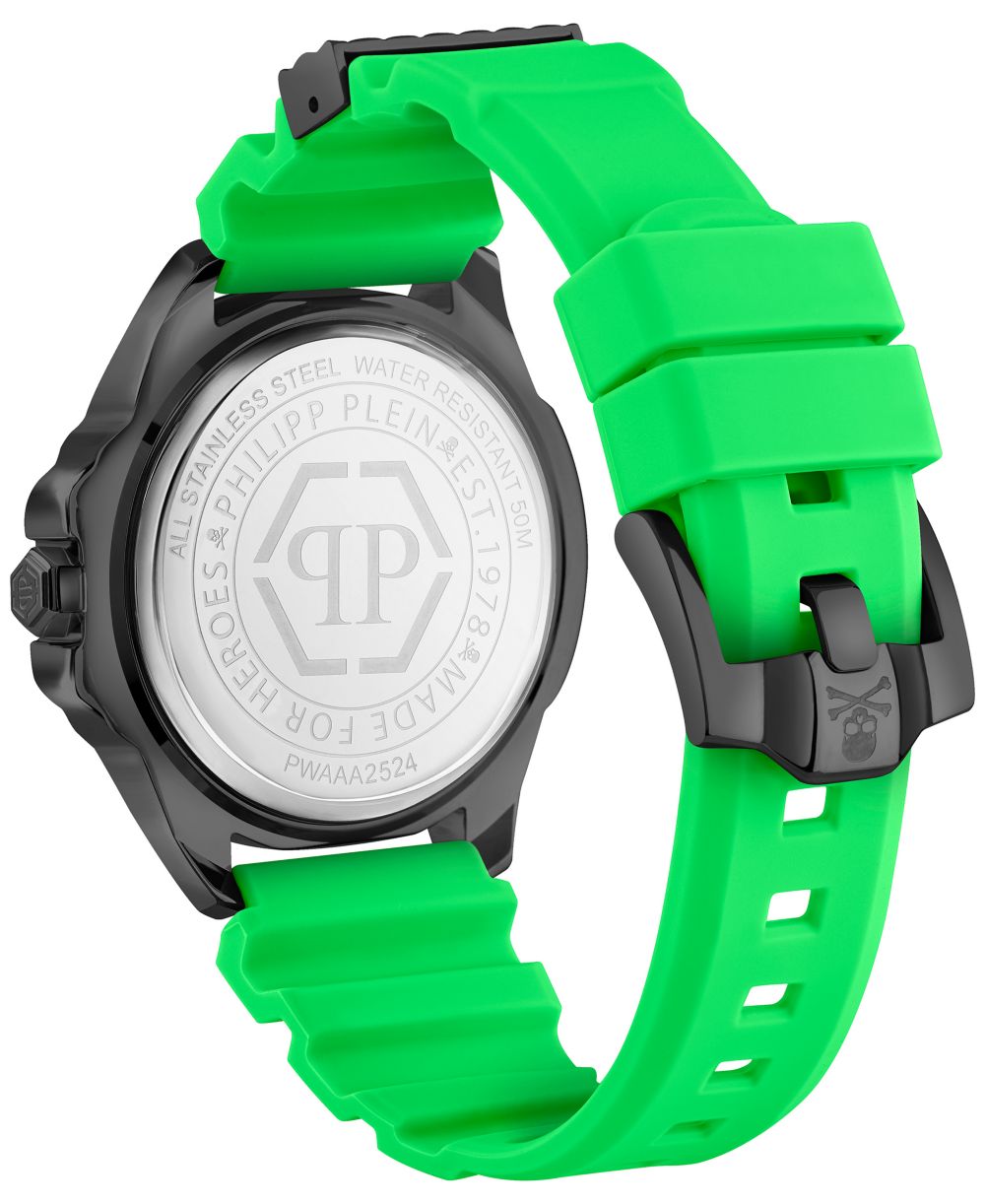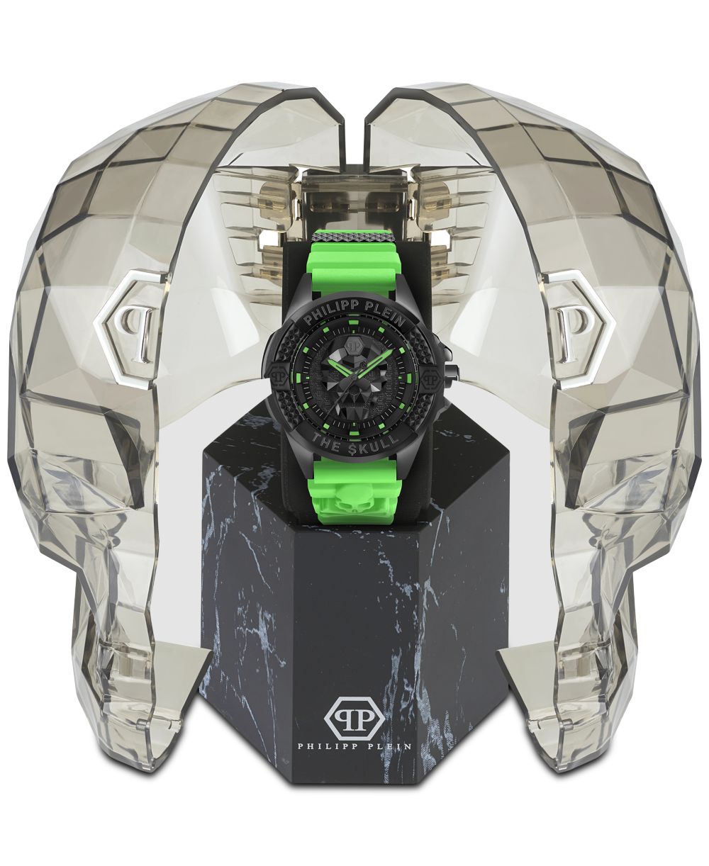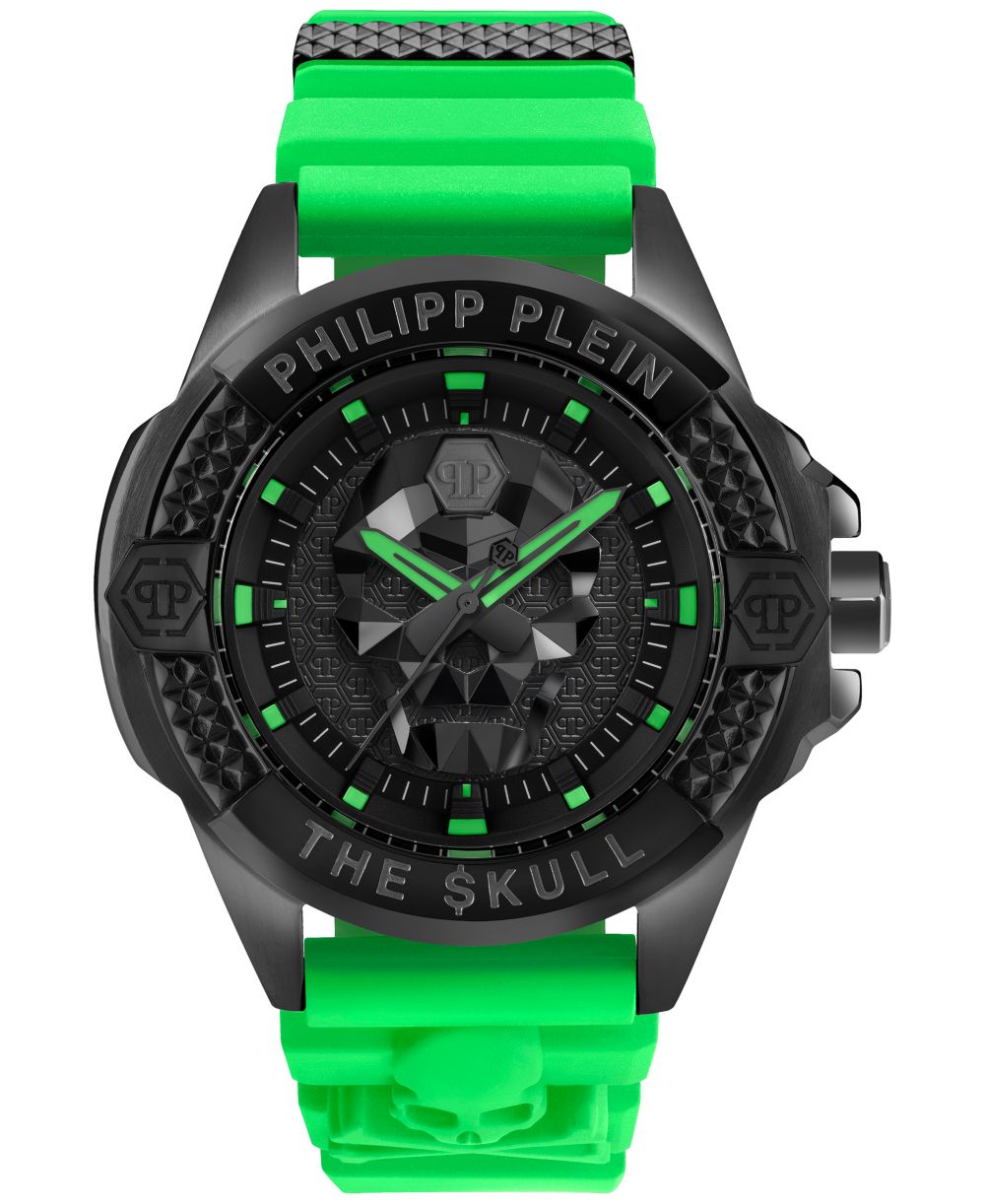 Philipp Plein Mens The Skull Green Silicone Strap Watch 44mm
