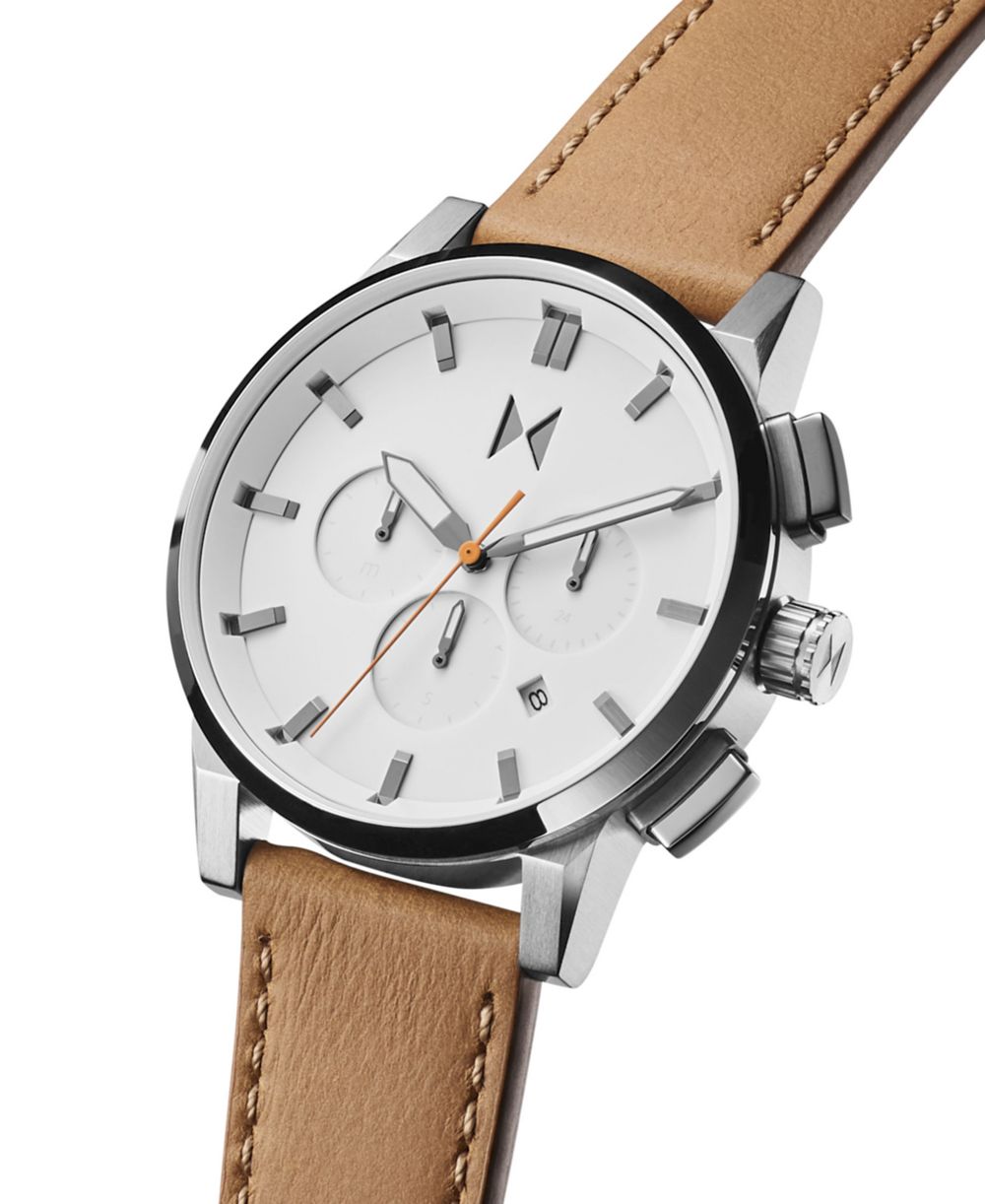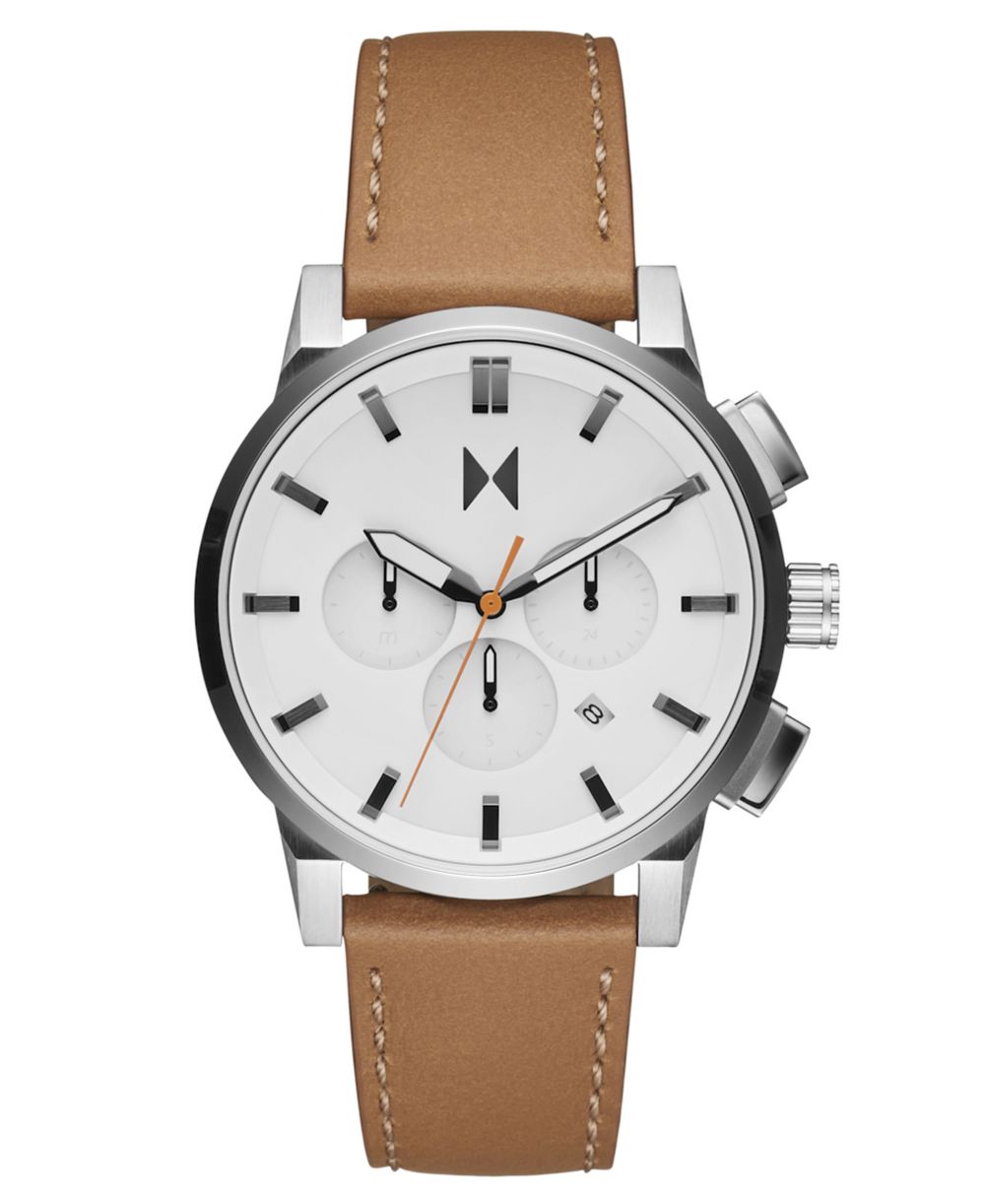 MVMT Mens Chrono II Brown Leather Strap Watch 44mm