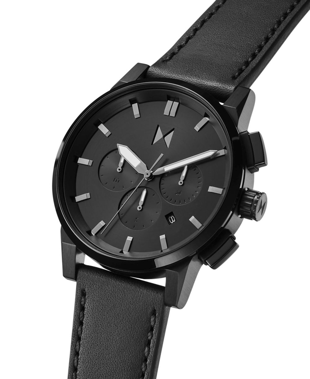MVMT Mens Chrono II Black Leather Strap Watch 44mm