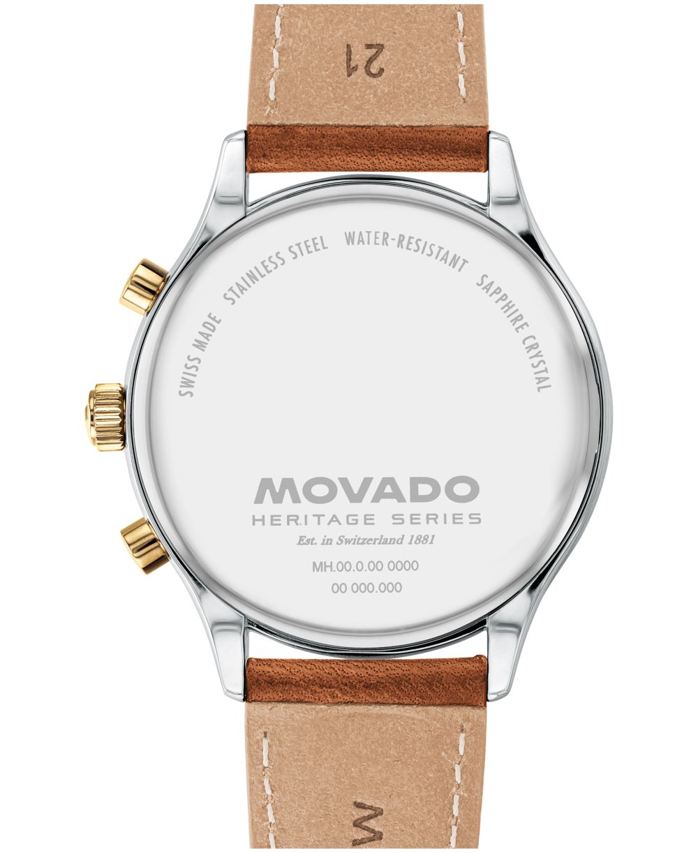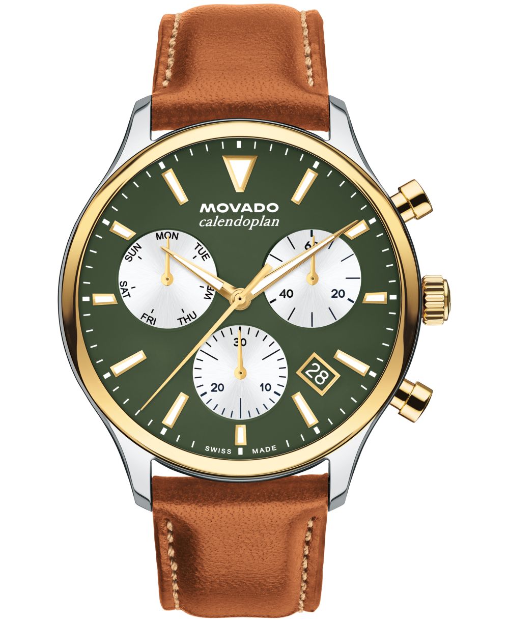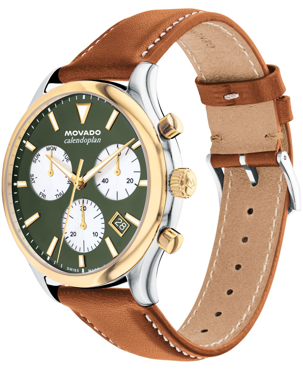 Movado Mens Calendoplan Swiss Quartz Chrono Cognac Leather Watch 43mm