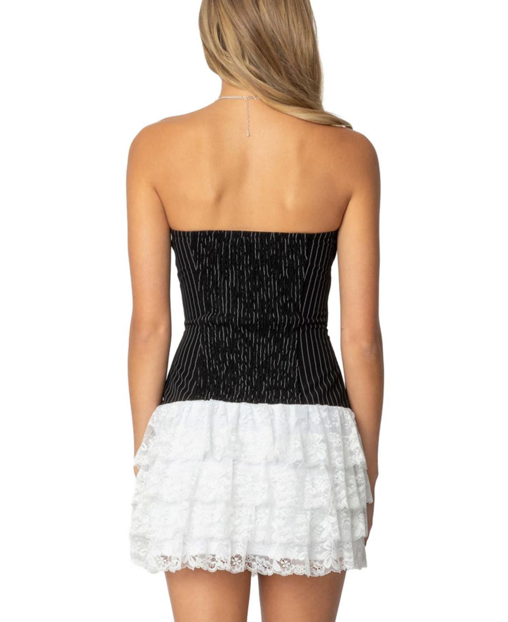 Edikted Womens Strapless Pinstripe Ruffle Skirt Mini Dress
