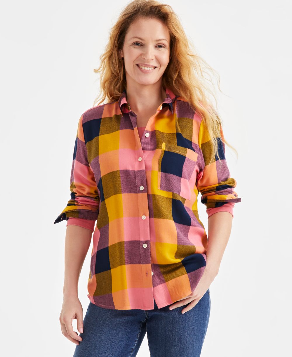 Style & Co Womens Plaid Button Front Perfect Shirt