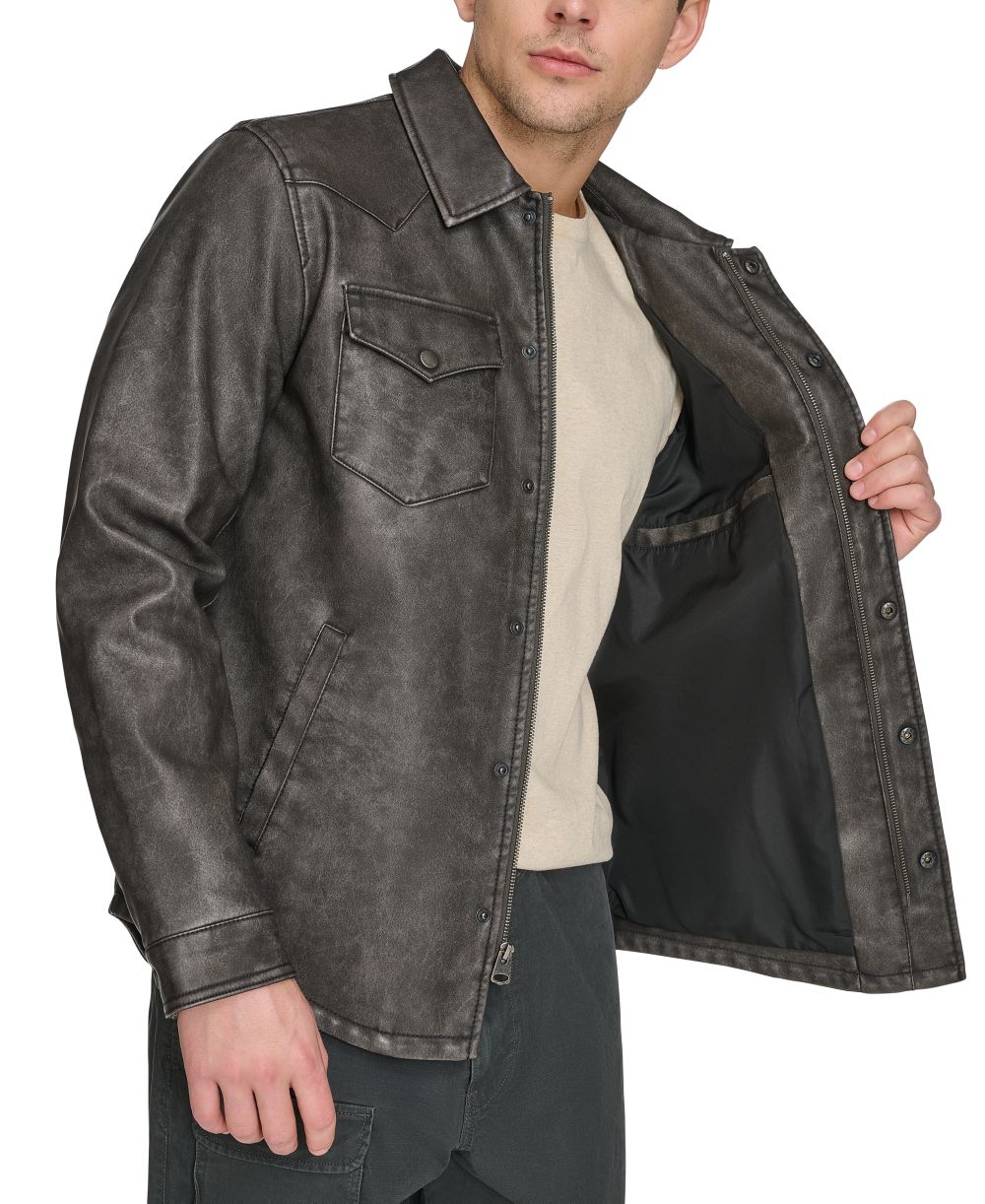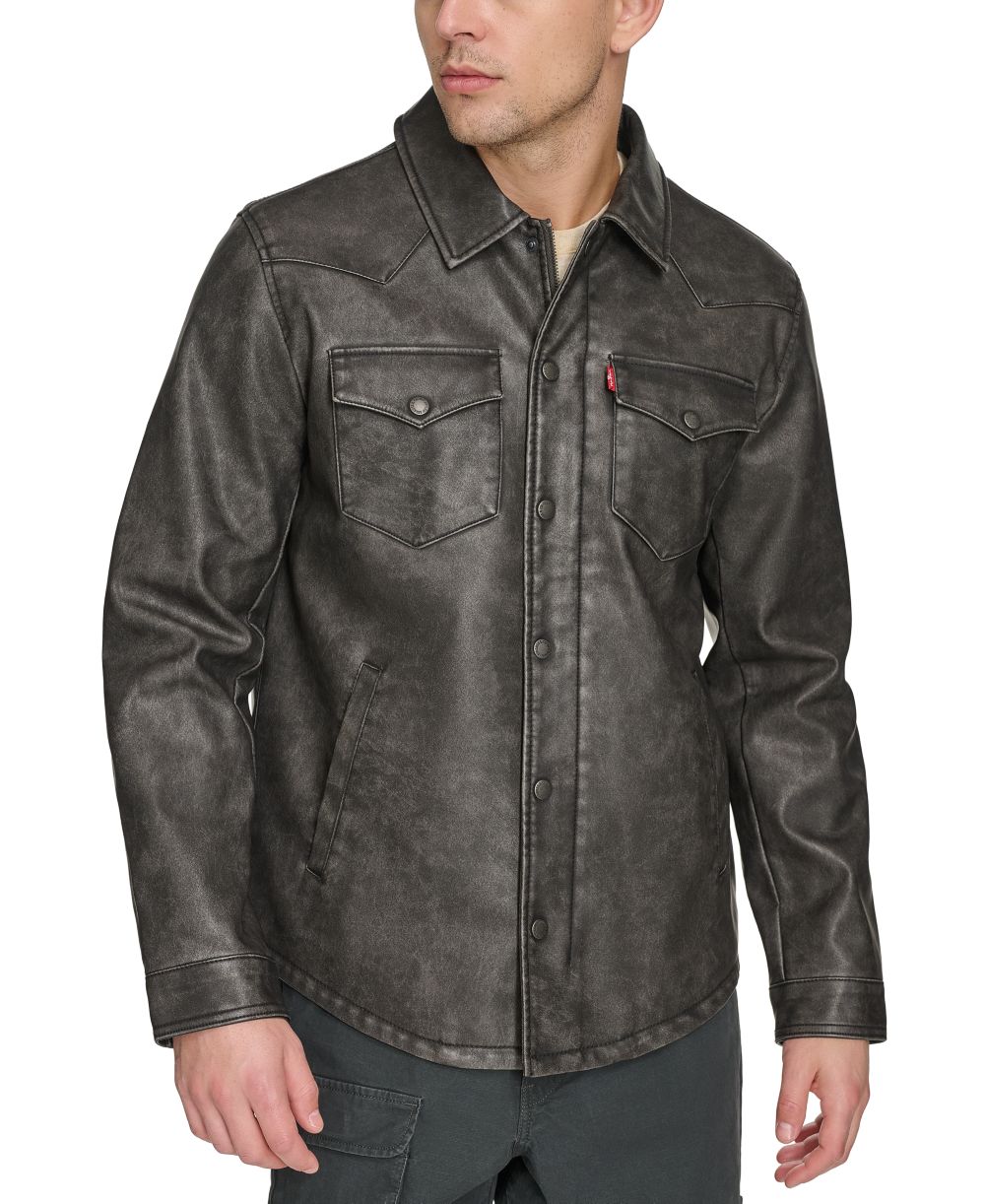 Levis Mens Full Zip Faux Leather Western Shirt Jacket