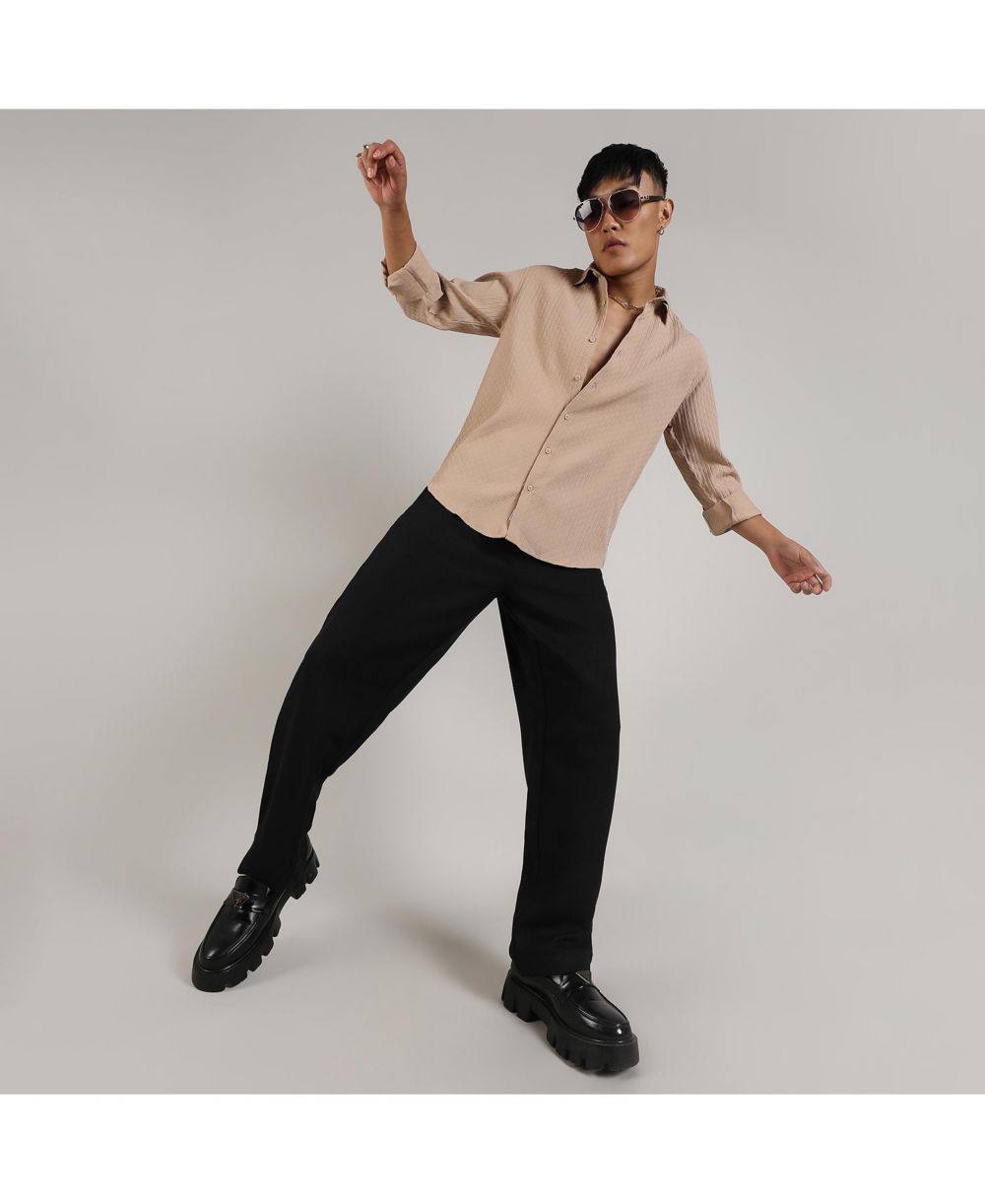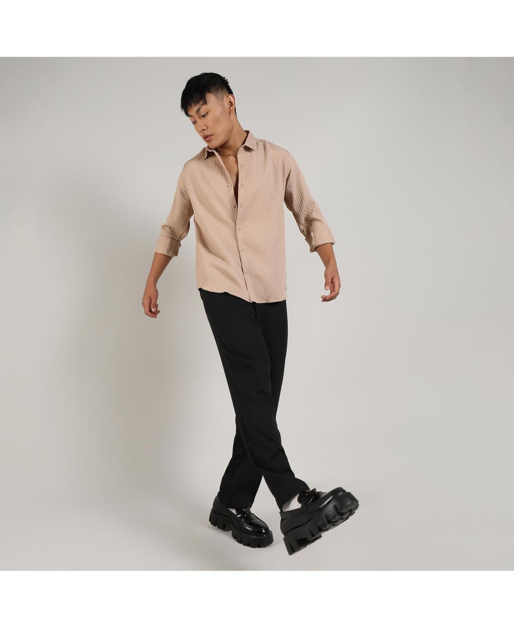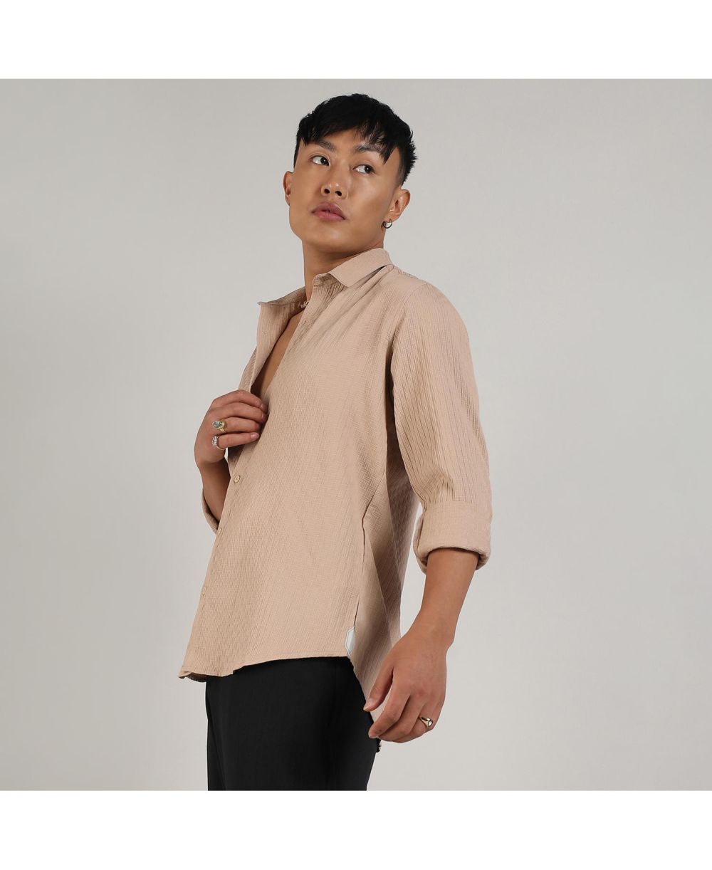 Campus Sutra Mens Beige Textured Interweave Shirt