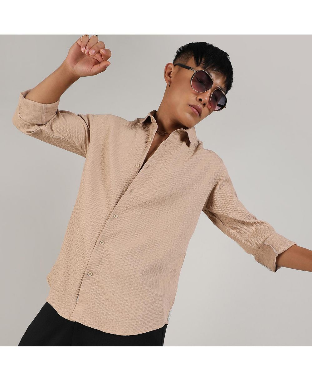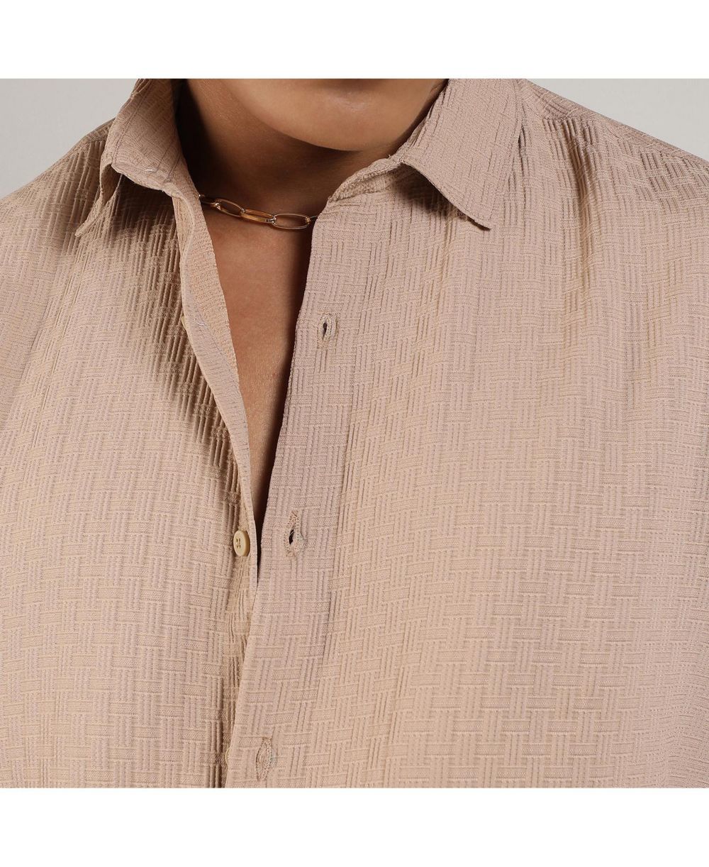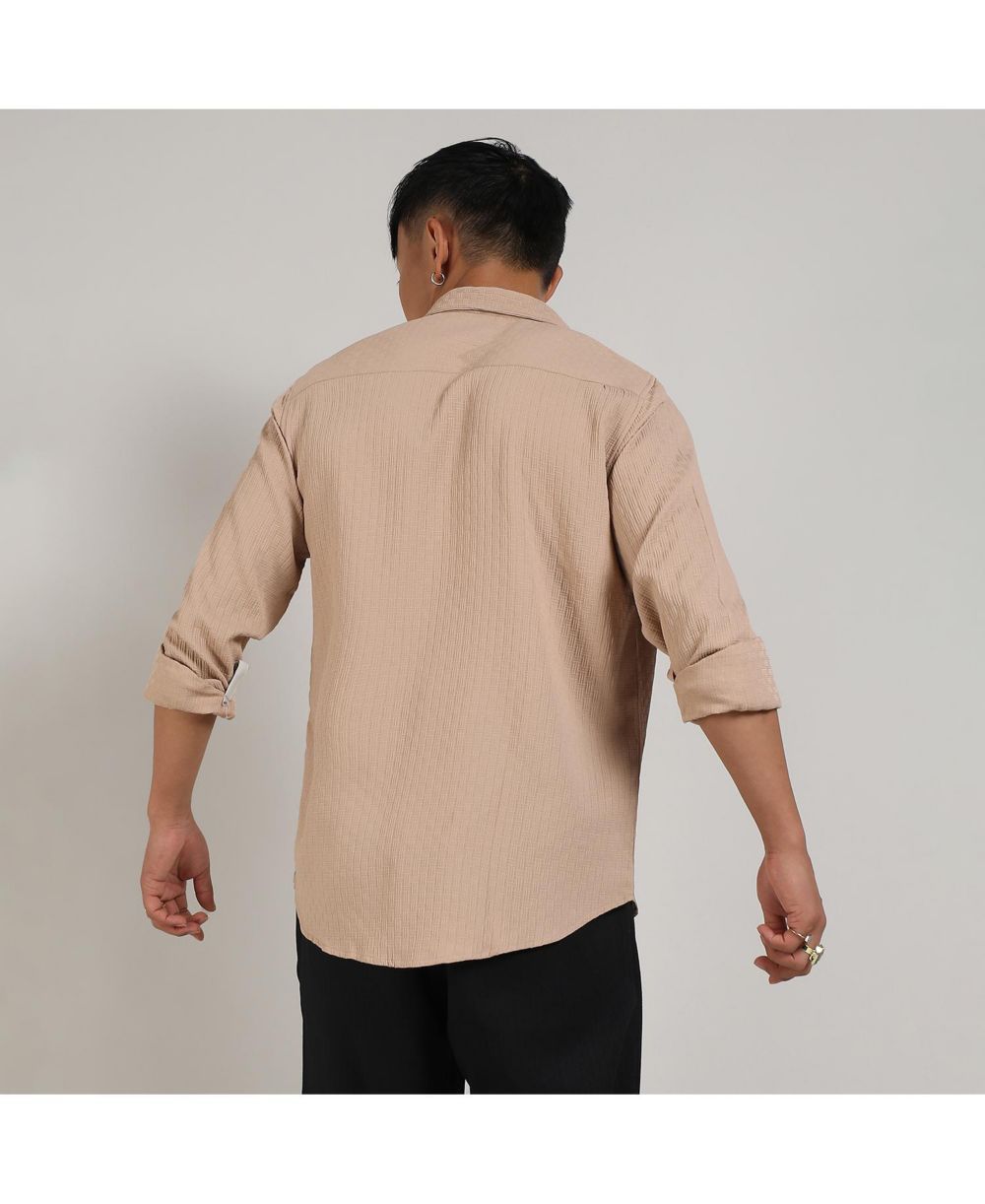 Campus Sutra Mens Beige Textured Interweave Shirt
