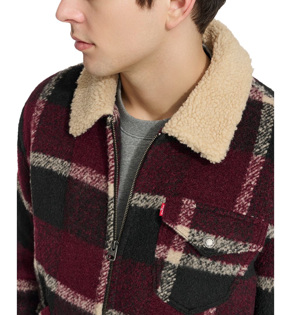 Levis Mens Plaid Full Zip Depot Jacket with Fleece Collar