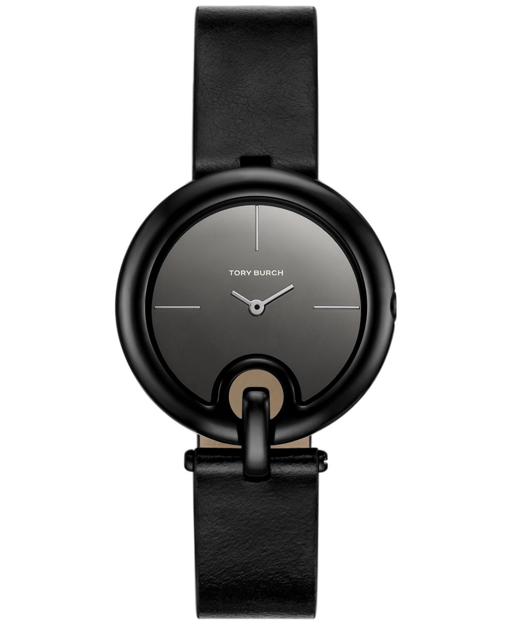 Tory Burch Womens The Pierced Black Leather Strap Watch 36mm