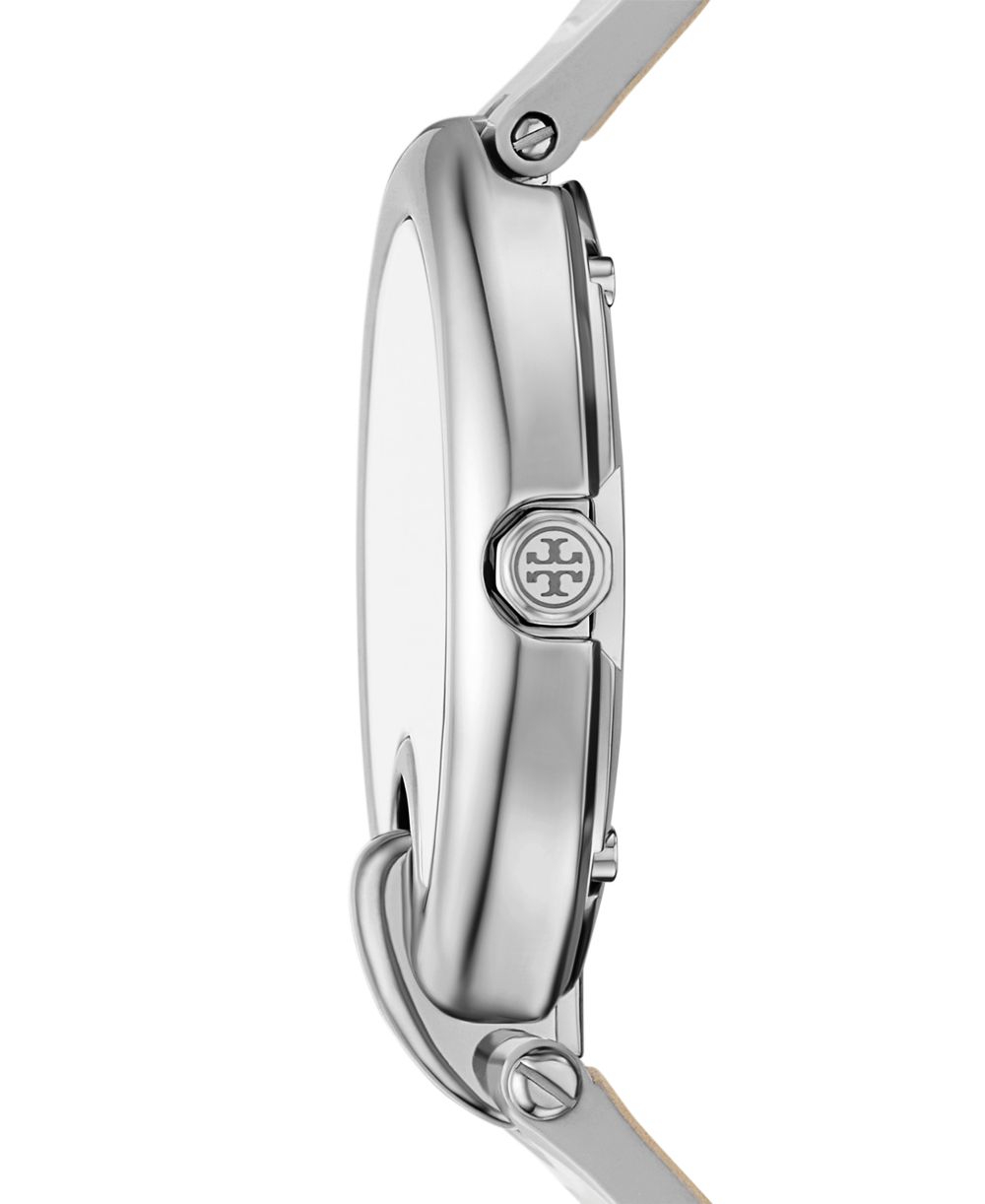 Tory Burch Womens The Pierced Silver Leather Strap Watch 36mm