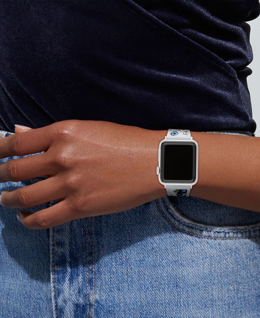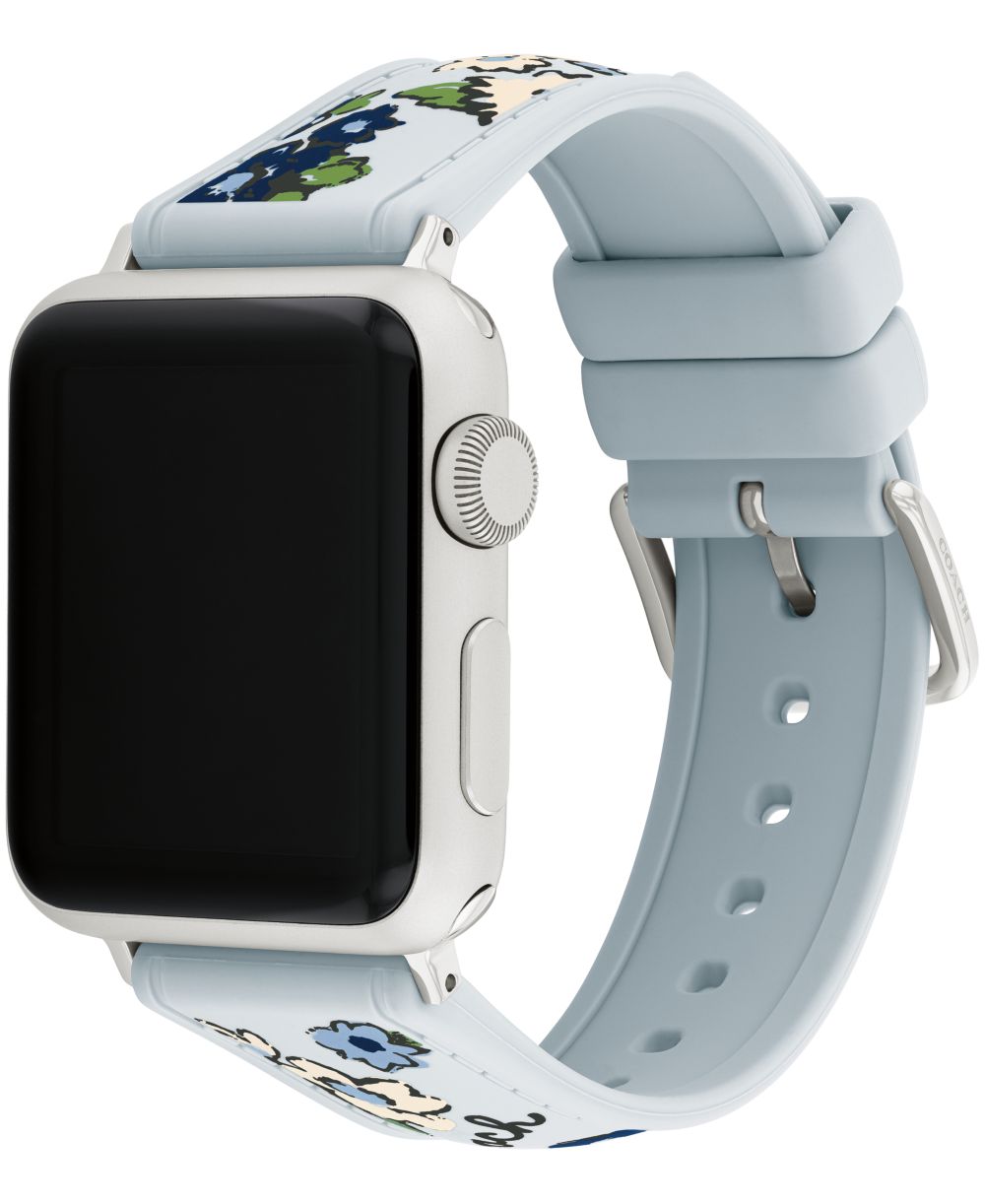 COACH Womens Blue Floral Silicone Strap Band for Apple Watch 38mm 40mm 41mm