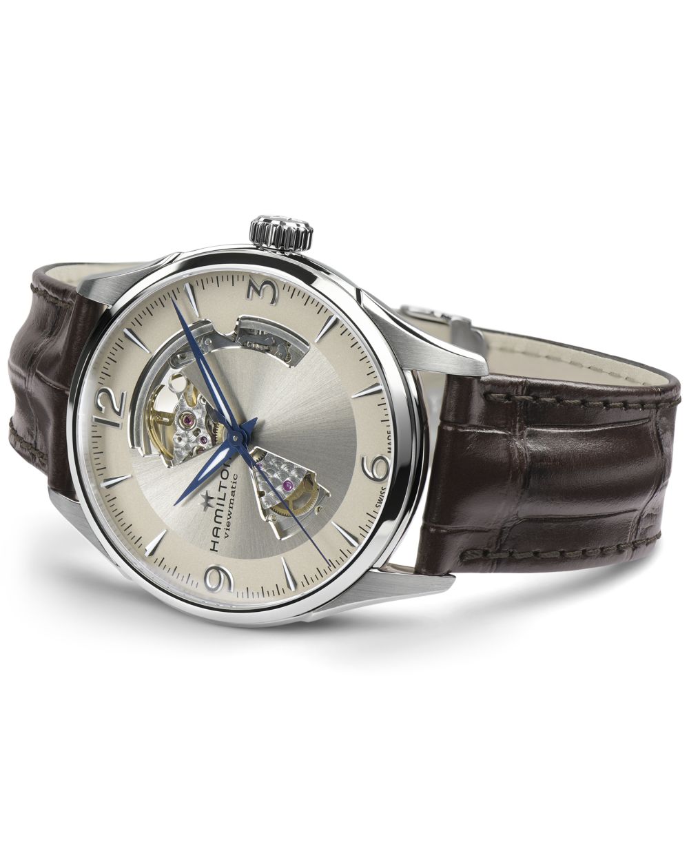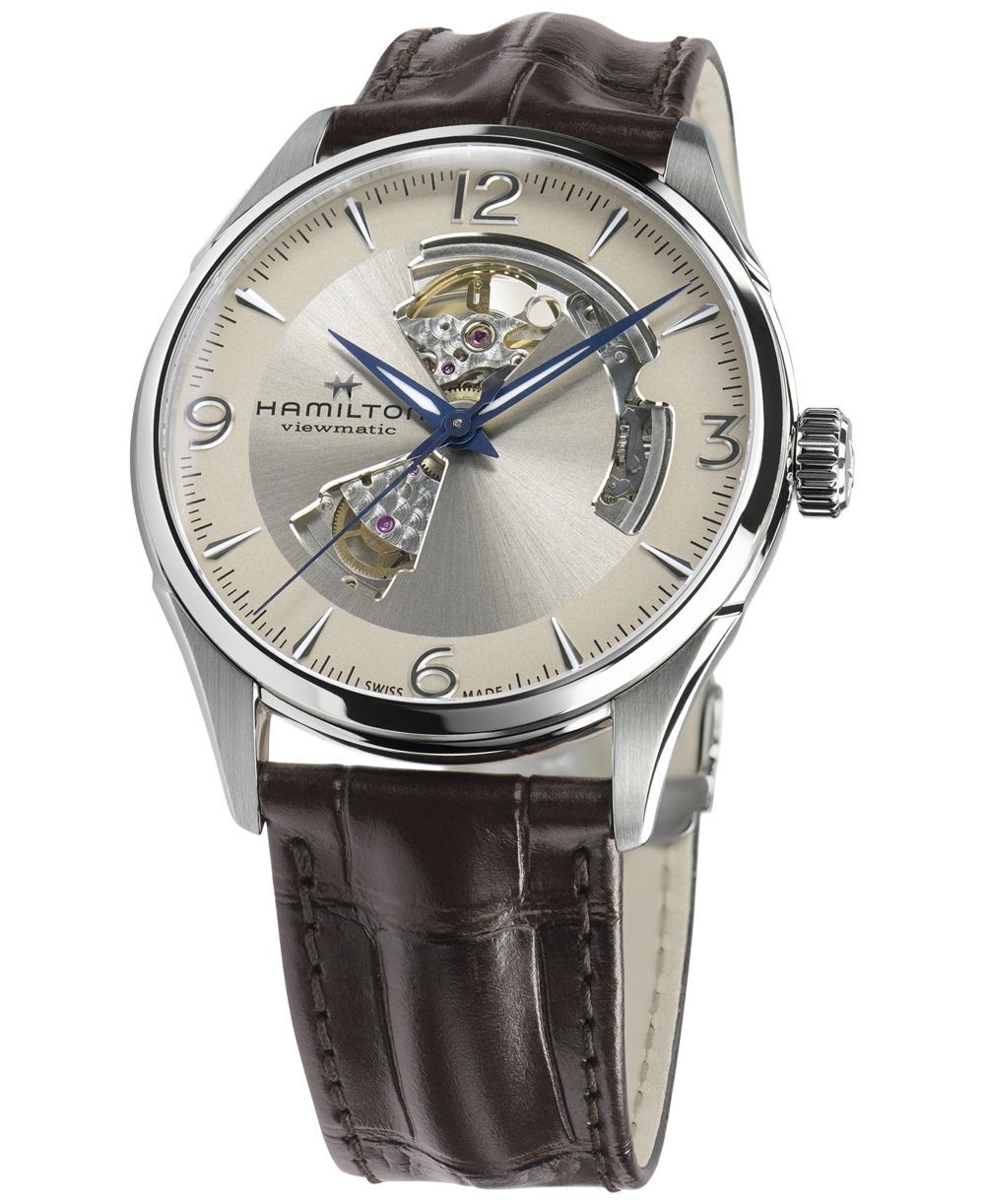 Hamilton Mens Swiss Automatic Jazzmaster Open Heart Brown Leather Strap Watch 42mm
