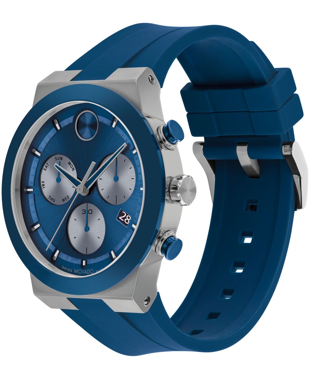 Movado Mens Bold Fusion Swiss Quartz Chrono Blue Silicone Watch 44.50mm