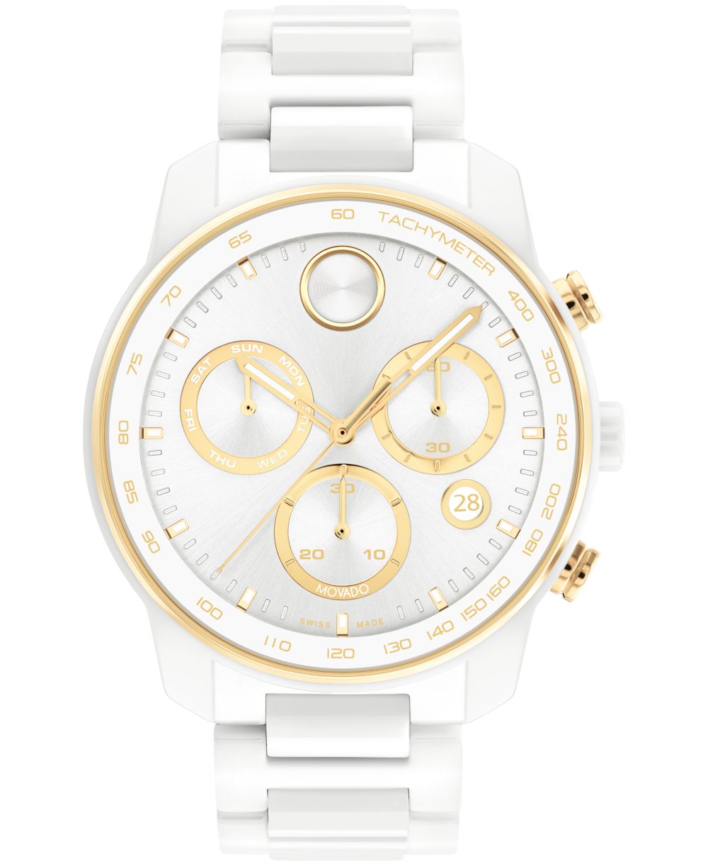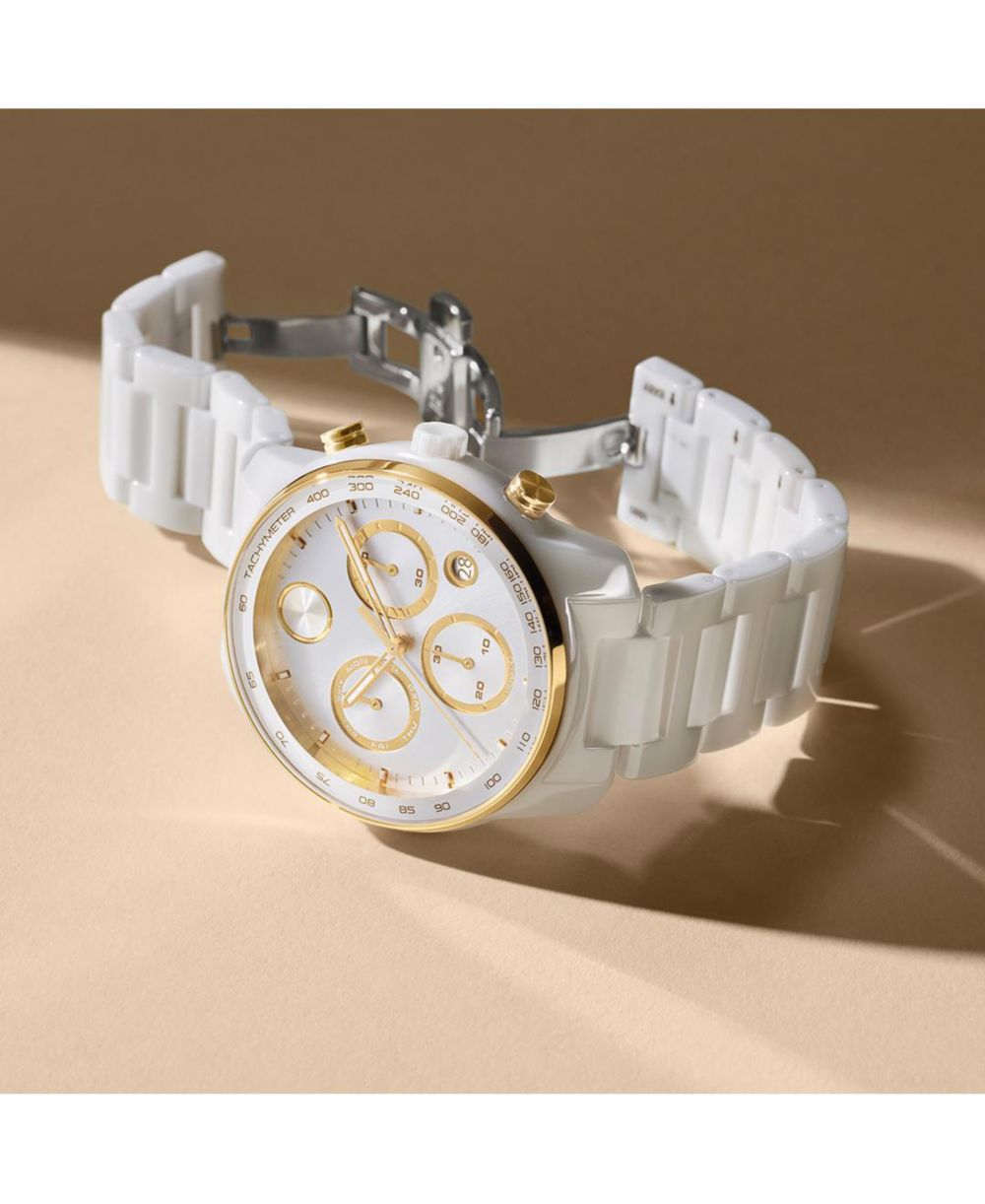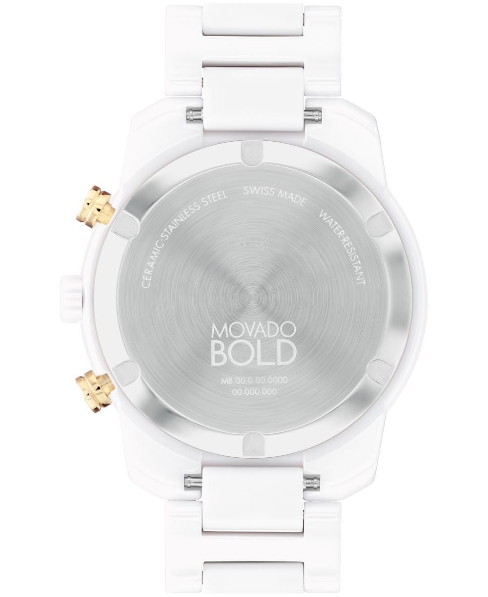 Movado Mens Bold Verso Swiss Quartz Chrono White Ceramic Watch 44mm