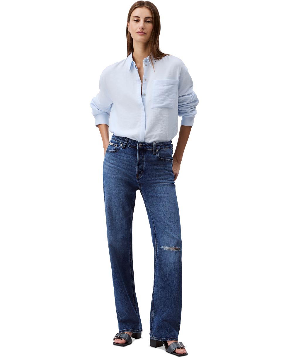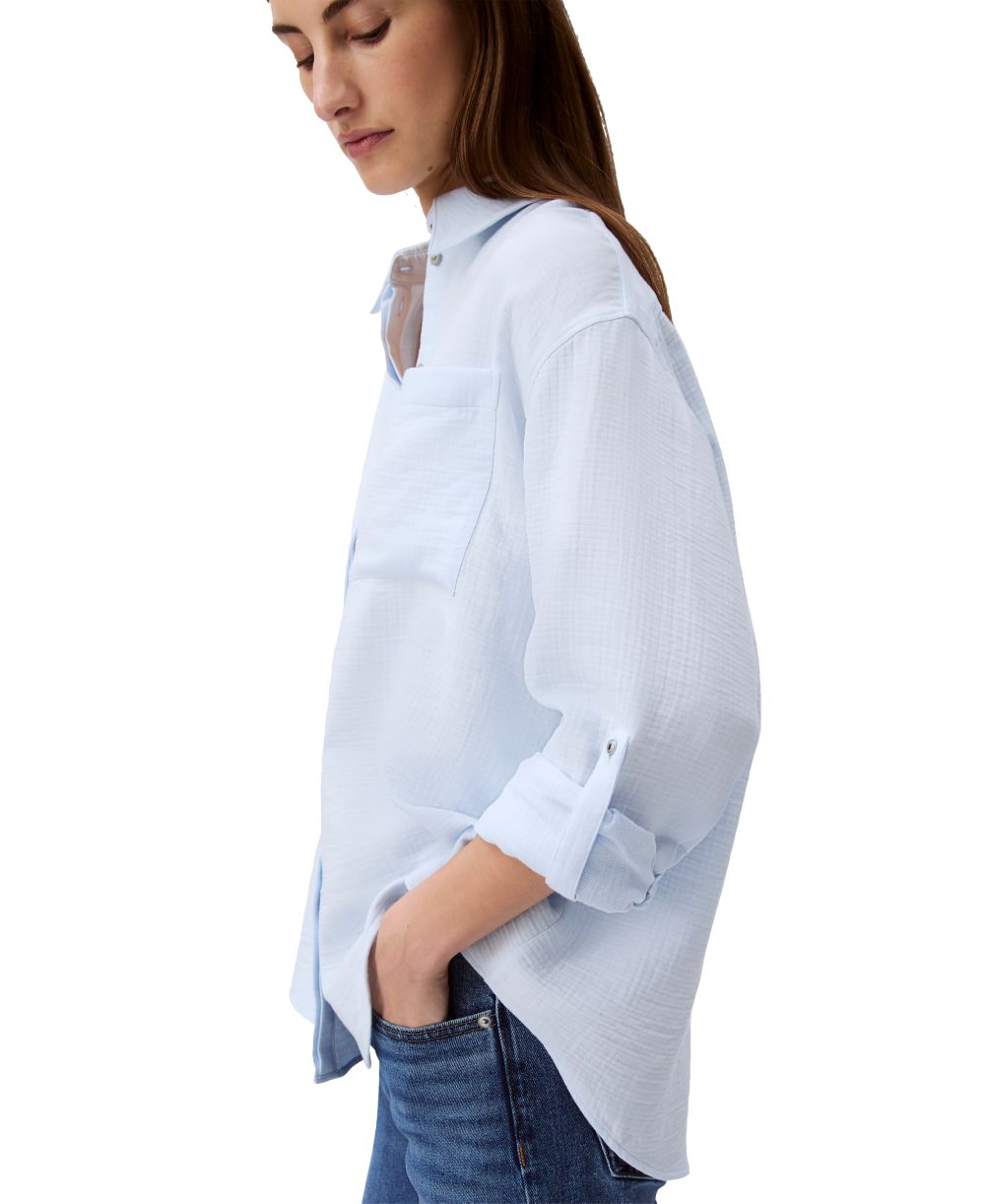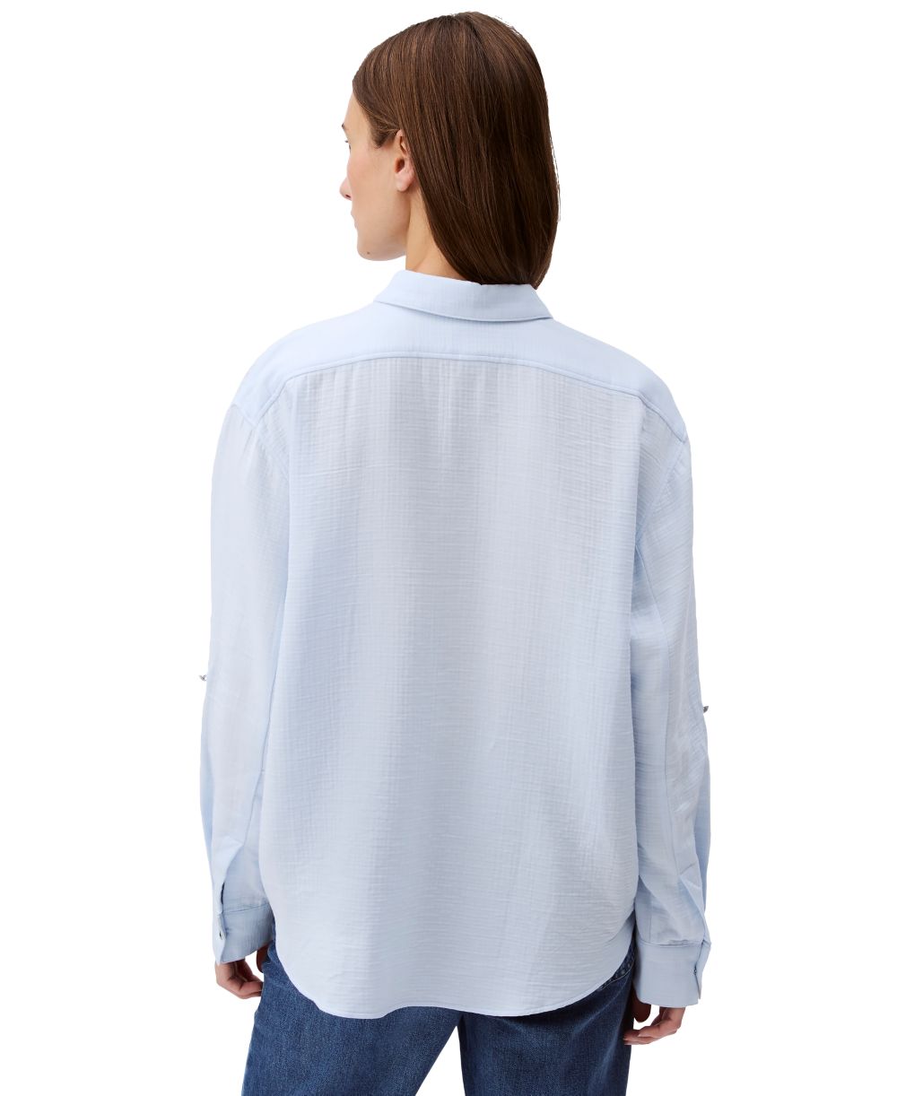 Calvin Klein Jeans Womens Double Gauze Roll Tab Sleeve Button Down Shirt