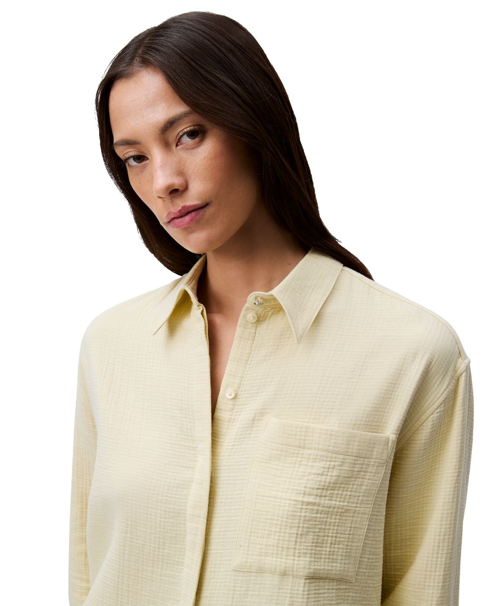 Calvin Klein Jeans Womens Double Gauze Roll Tab Sleeve Button Down Shirt
