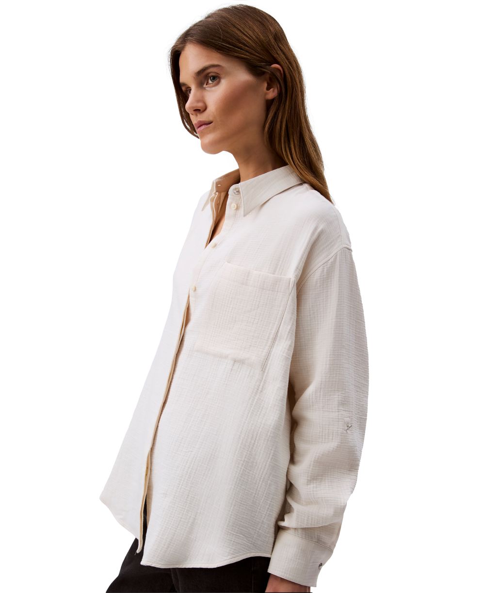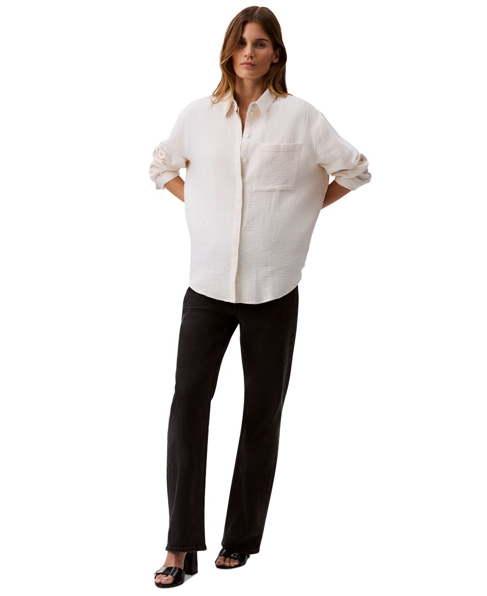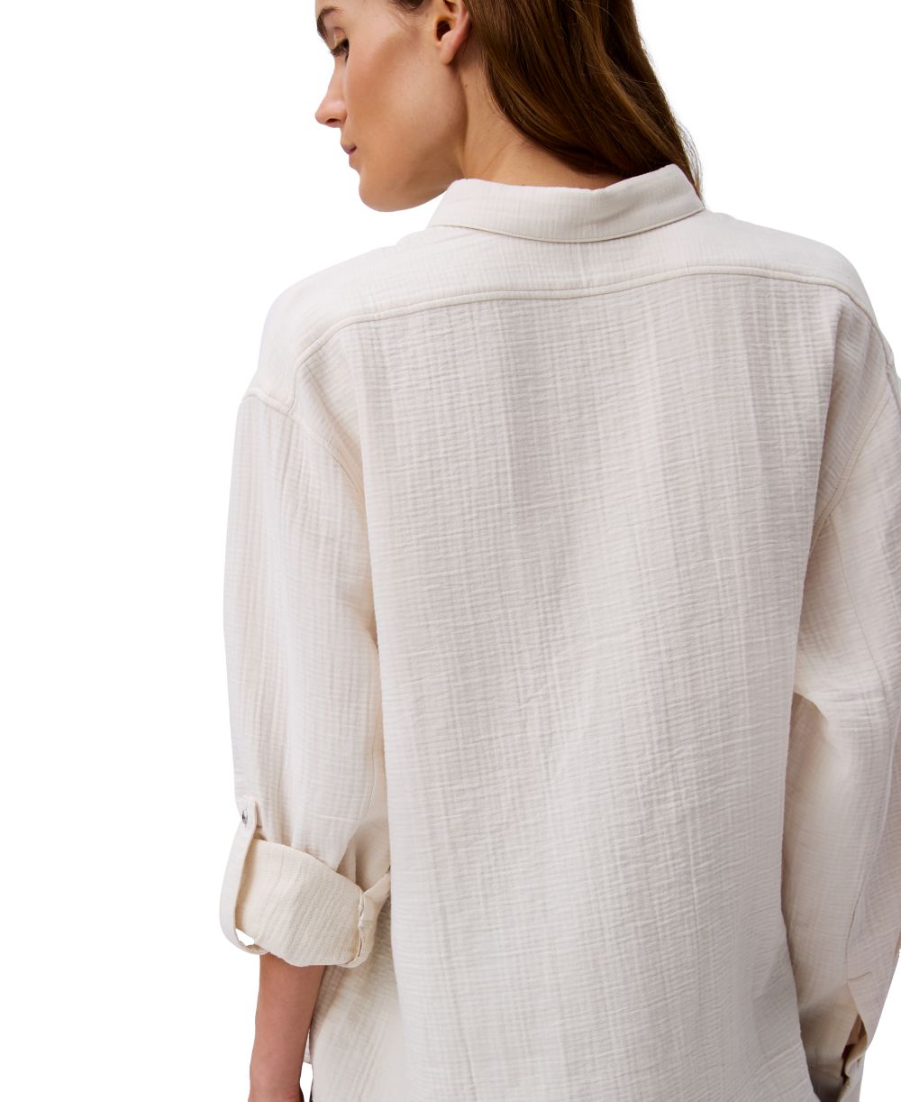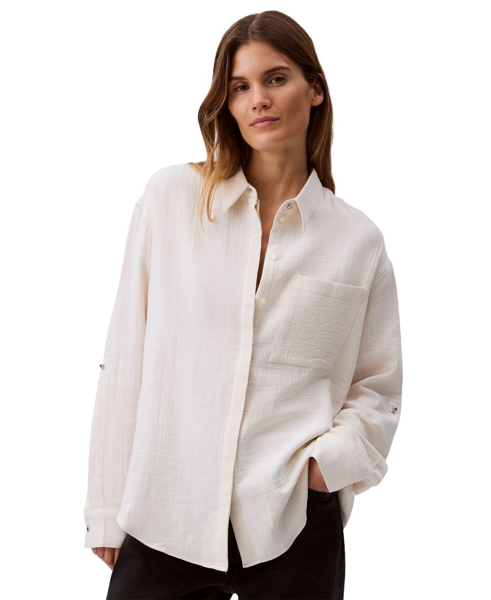 Calvin Klein Jeans Womens Double Gauze Roll Tab Sleeve Button Down Shirt