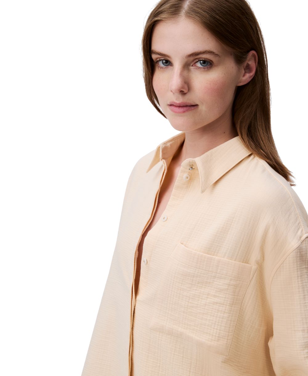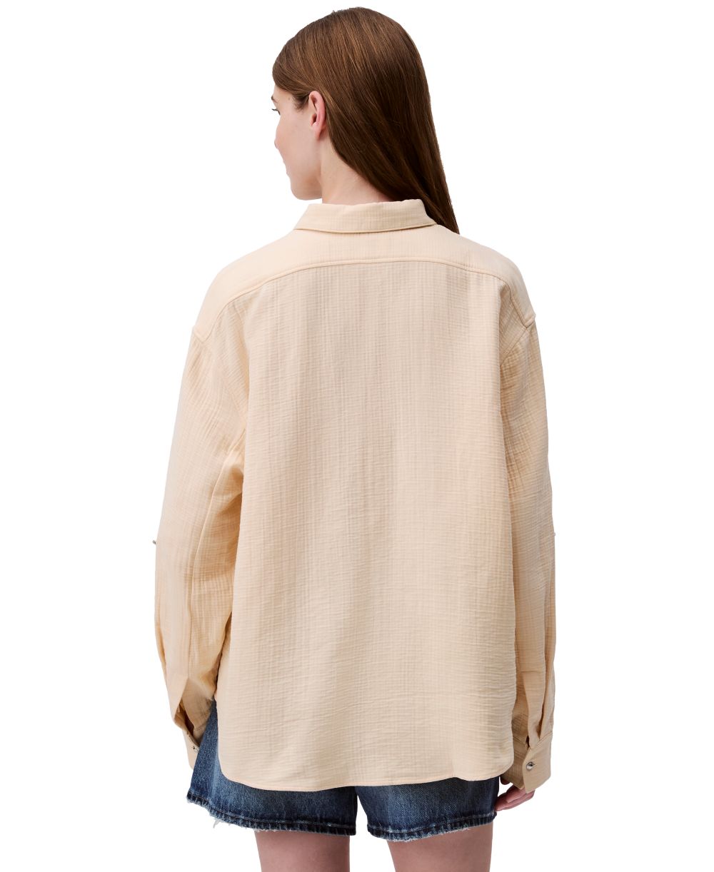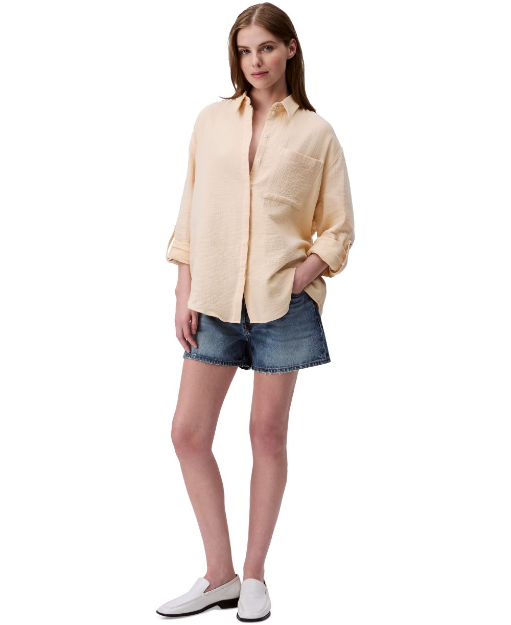 Calvin Klein Jeans Womens Double Gauze Roll Tab Sleeve Button Down Shirt