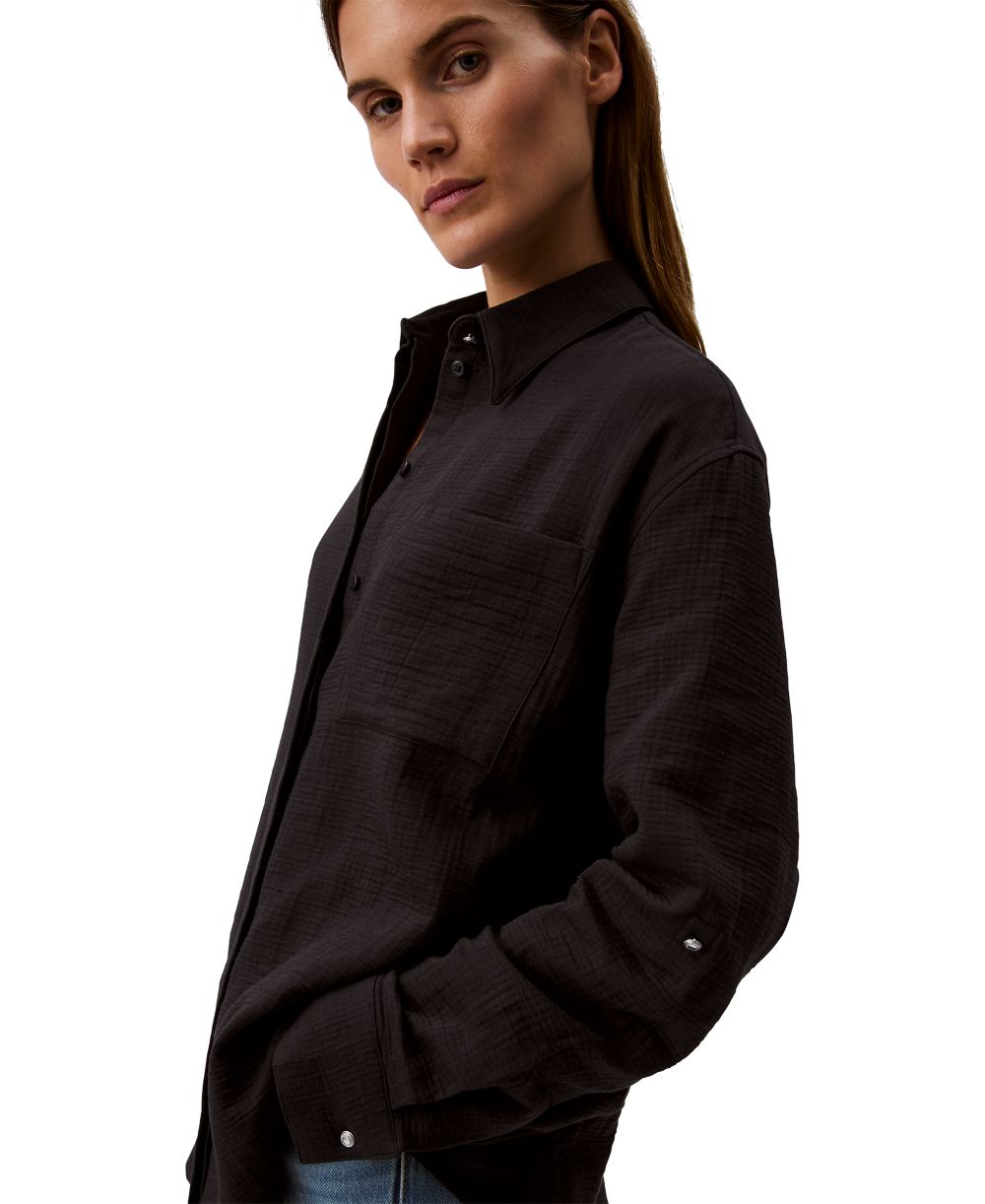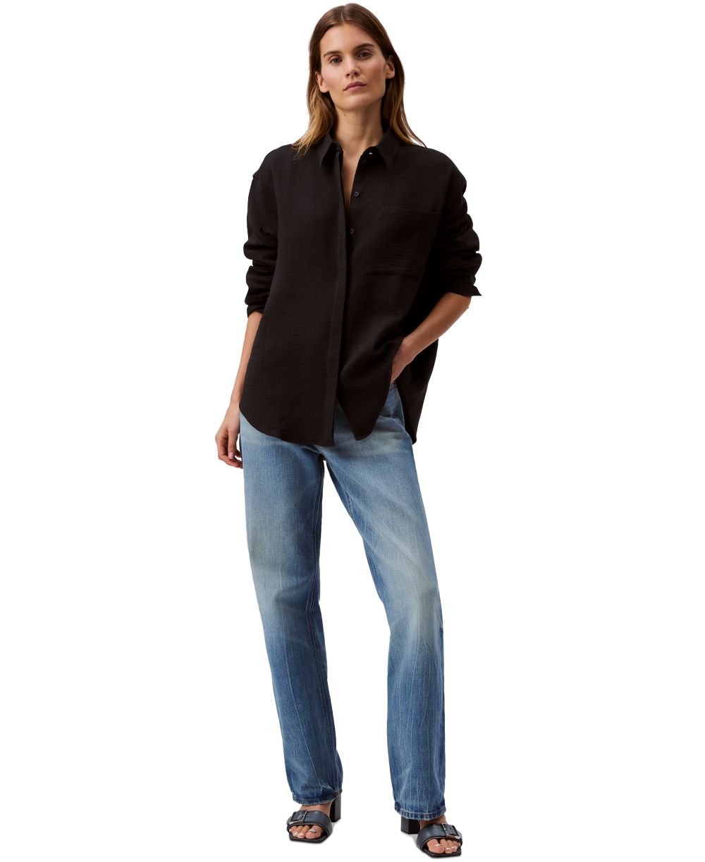 Calvin Klein Jeans Womens Double Gauze Roll Tab Sleeve Button Down Shirt