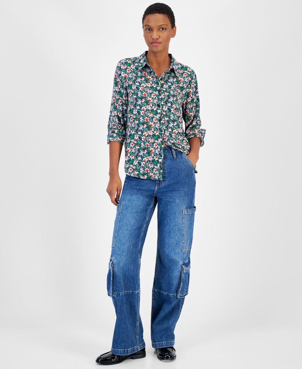 On 34th Womens Button Front Crepe Shirt